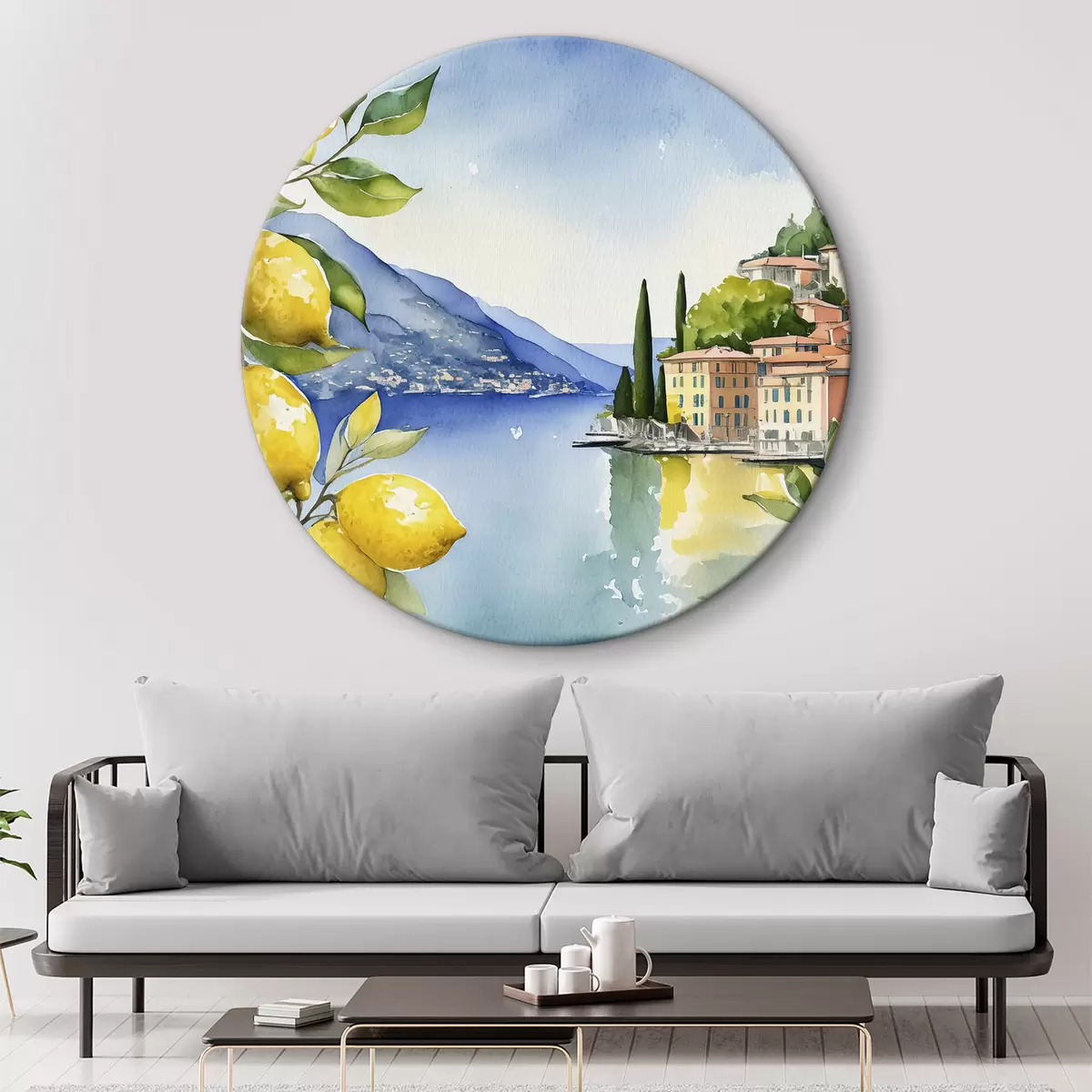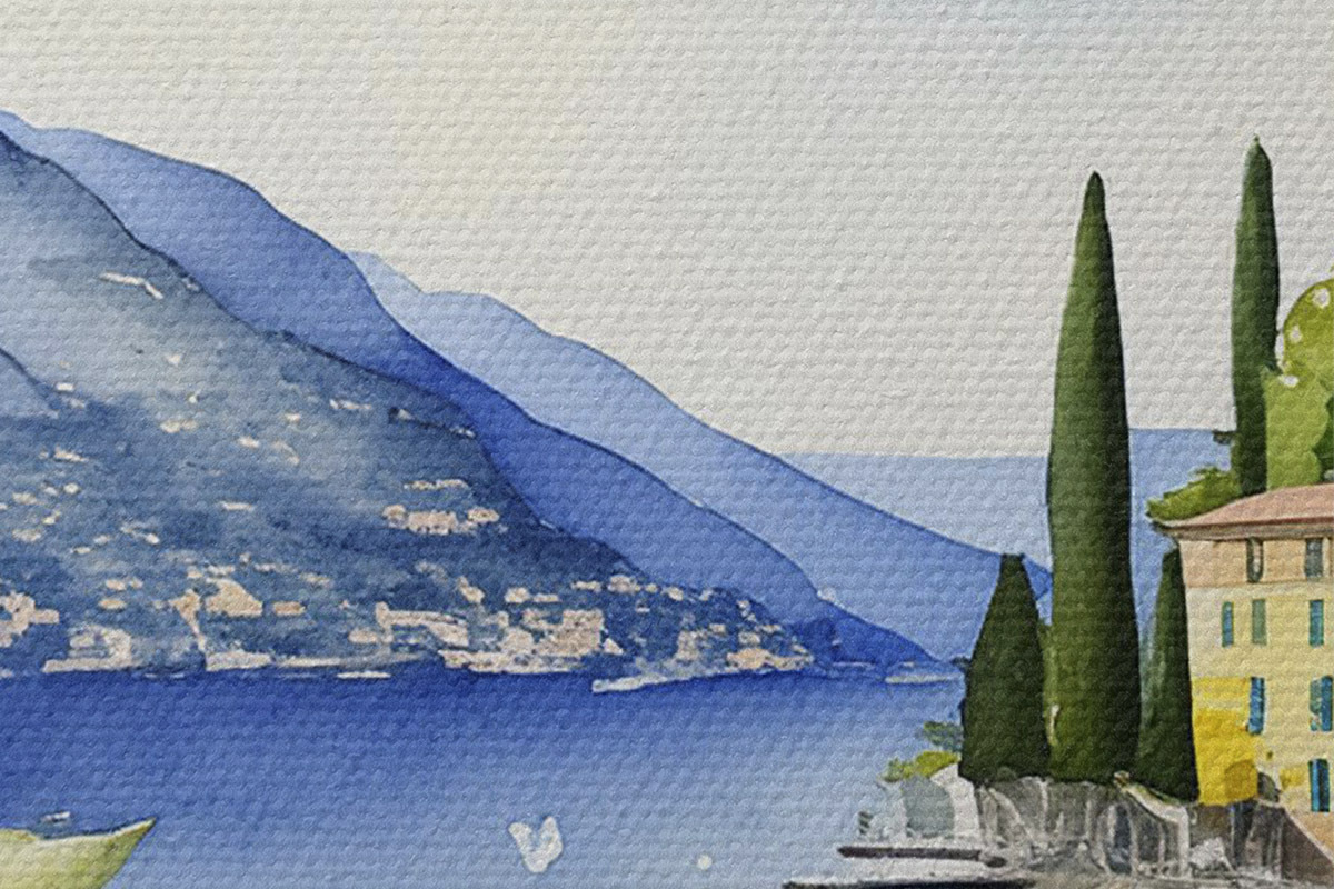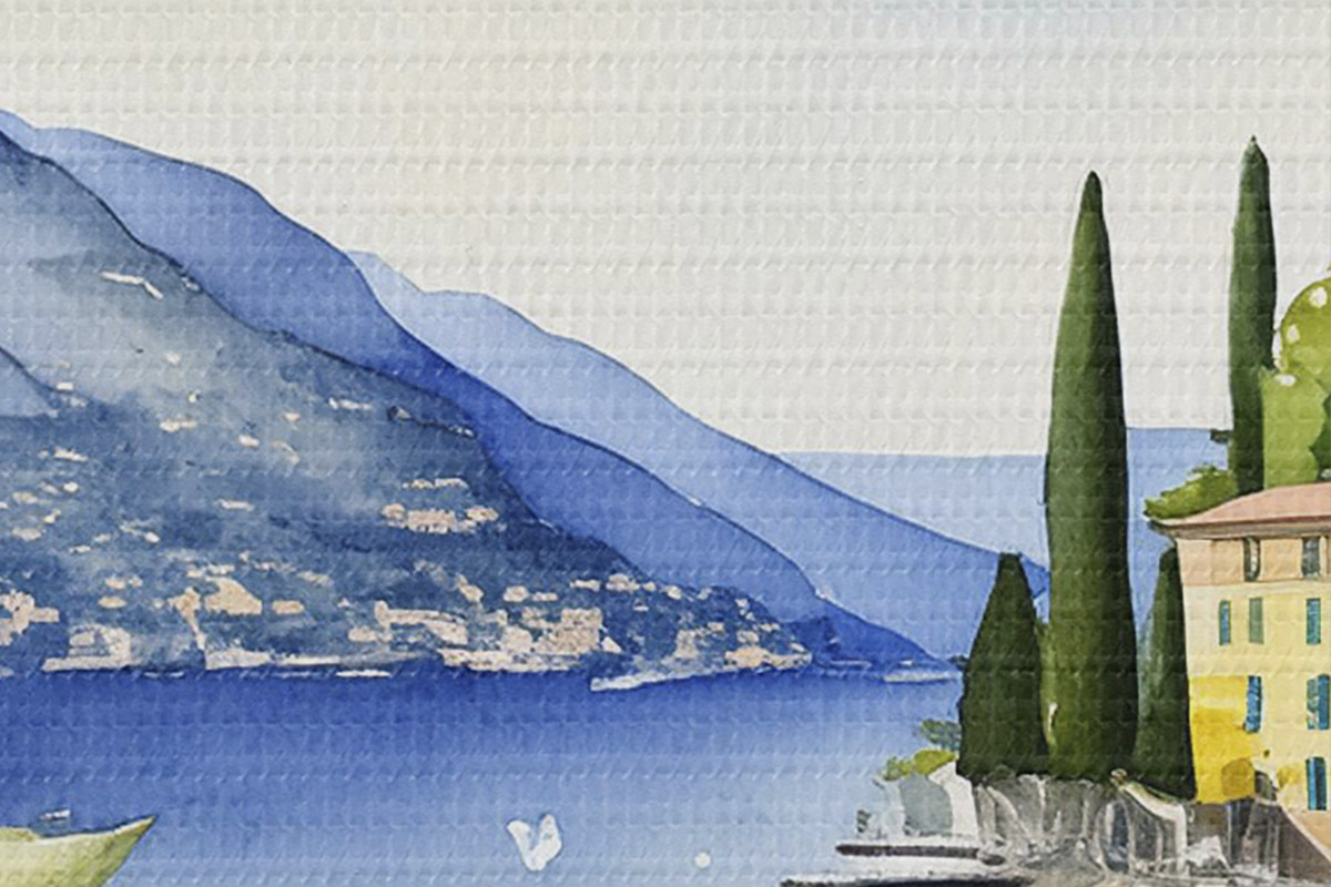 Obrázek Italské jezero, léto, akvarel, přírodní krajina, citrony, městská architektura Nr r38394