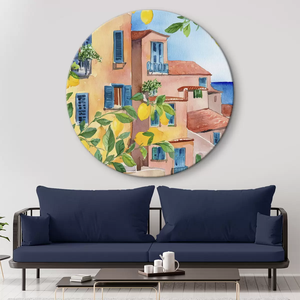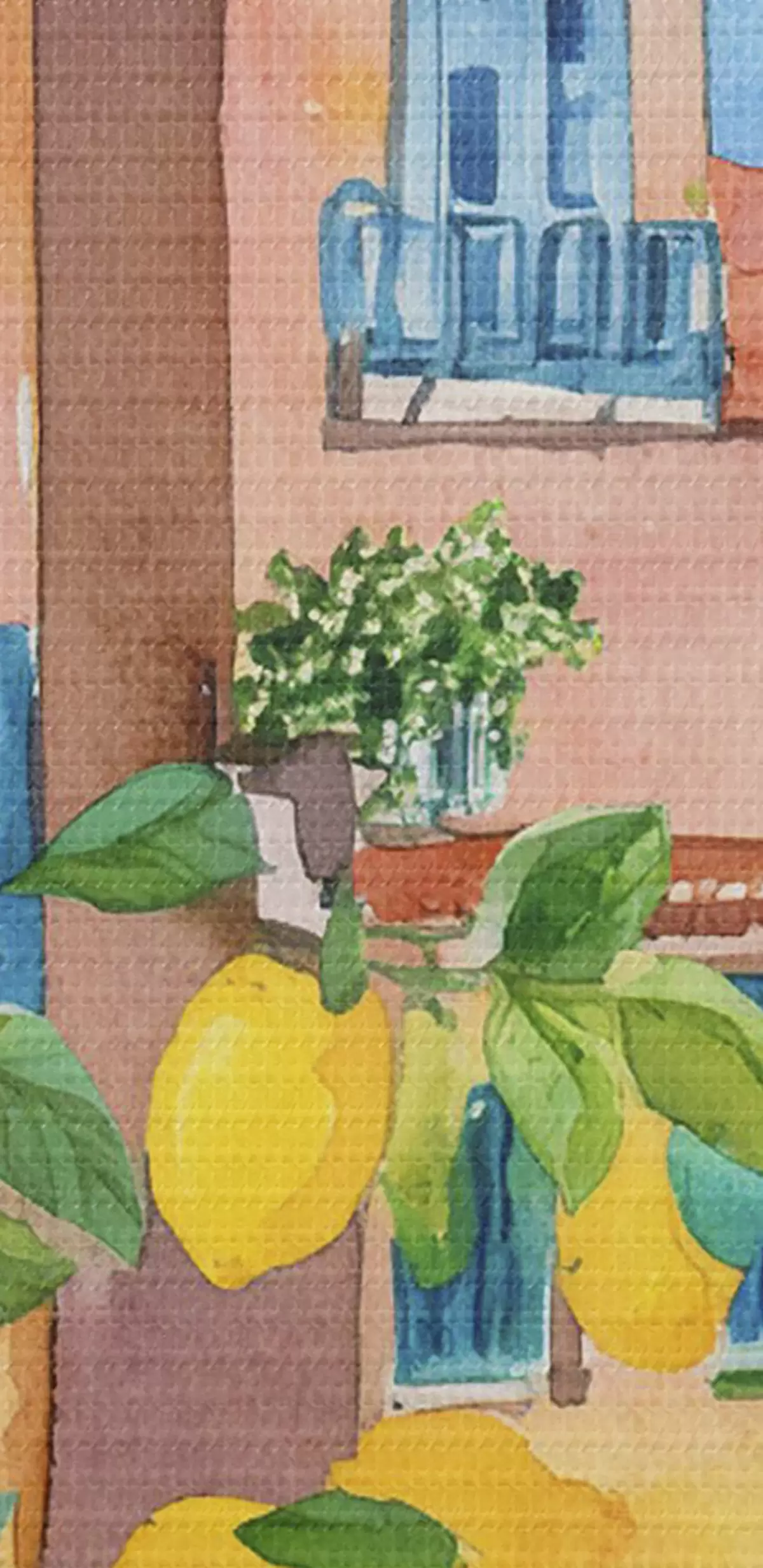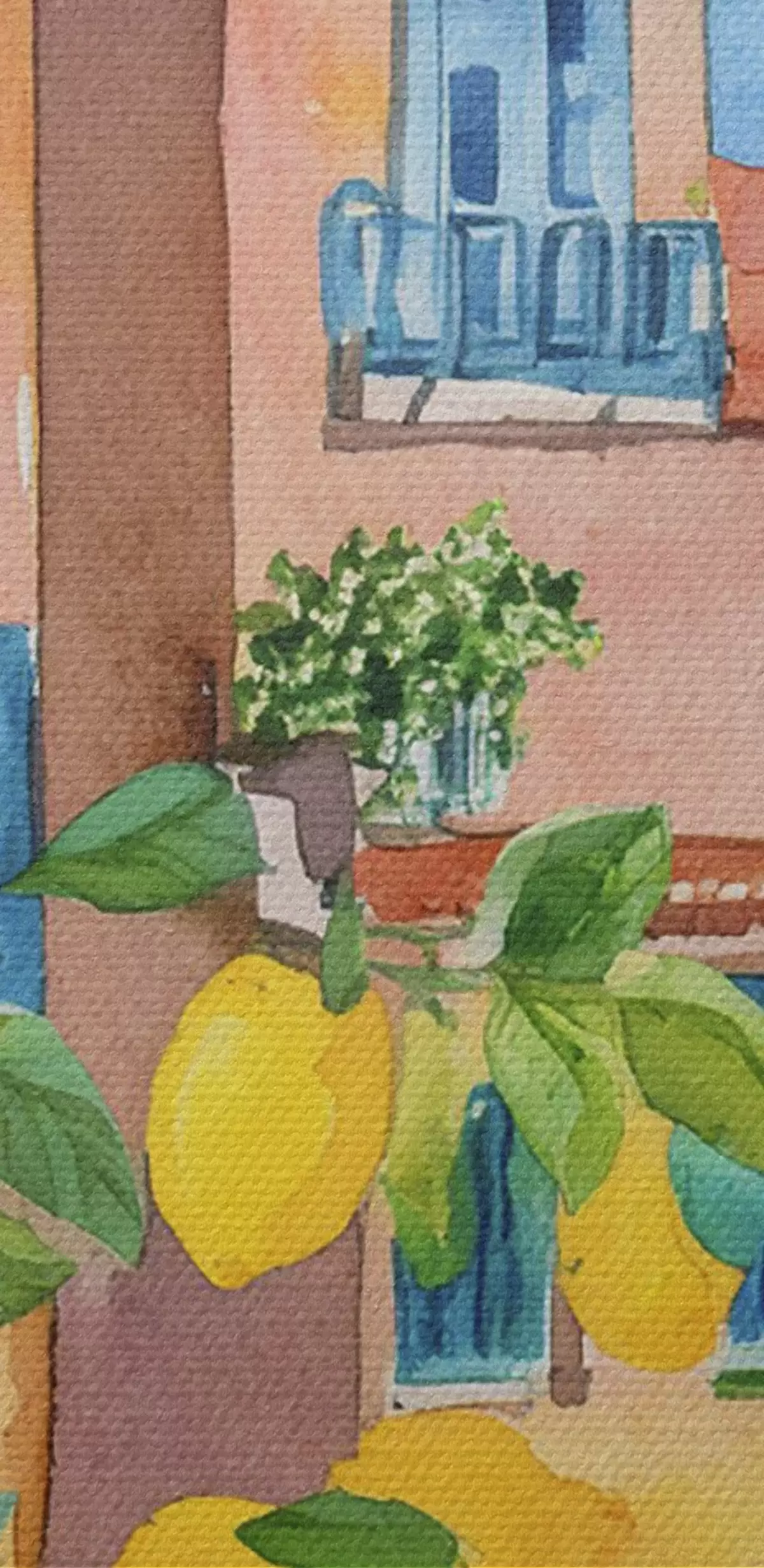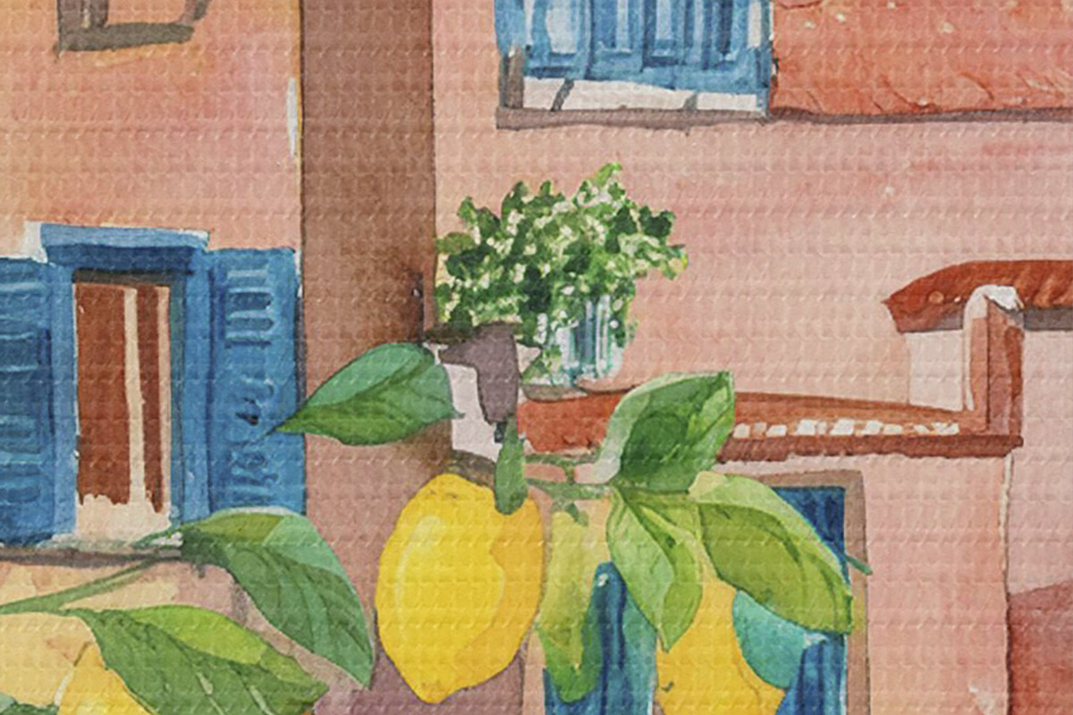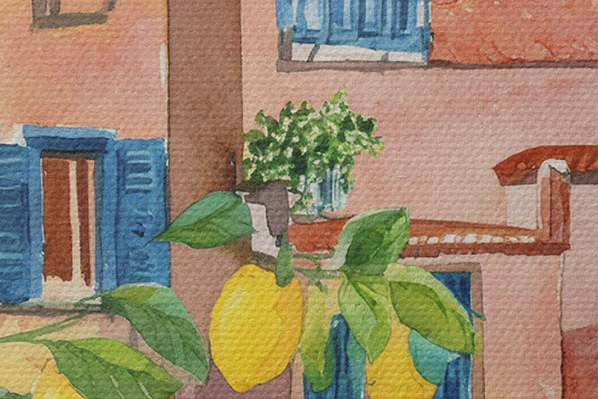 Obrázek Italská městská architektura, mořské pobřeží, léto, akvarel, citroník Nr r38395