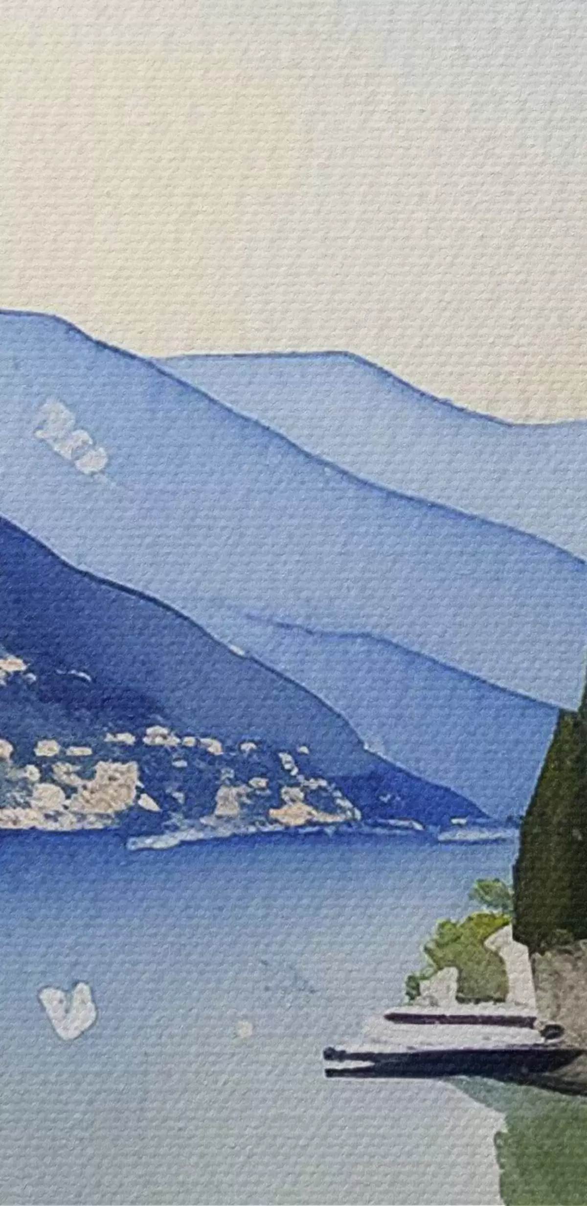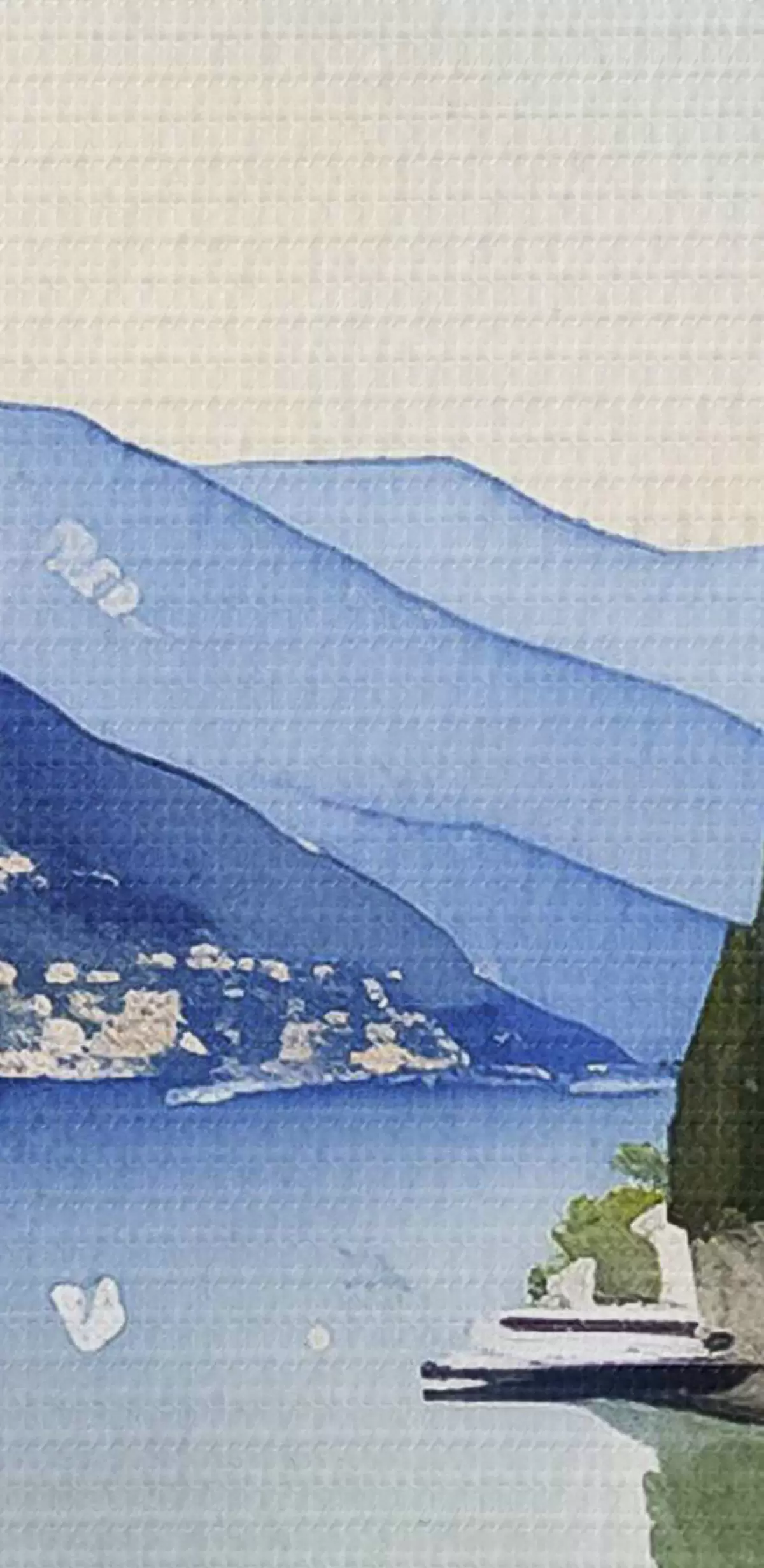 Obrázek Akvarel zobrazující město na břehu vodní nádrže Nr r38402