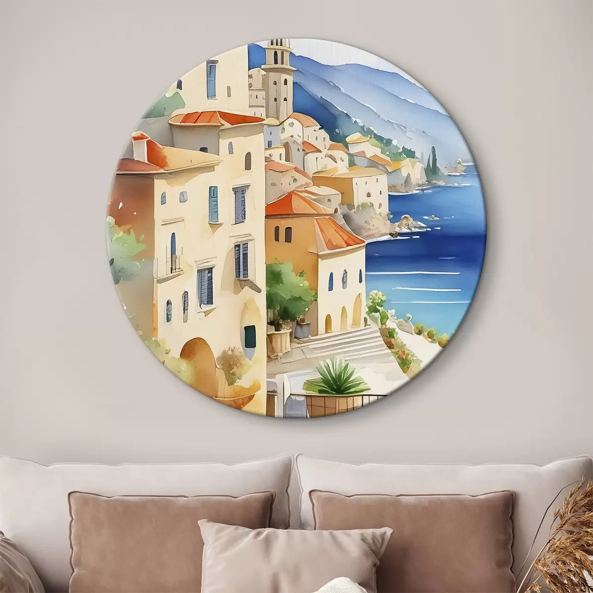 Obrázek Akvarel zobrazující město na kopci nad mořem Nr r38409