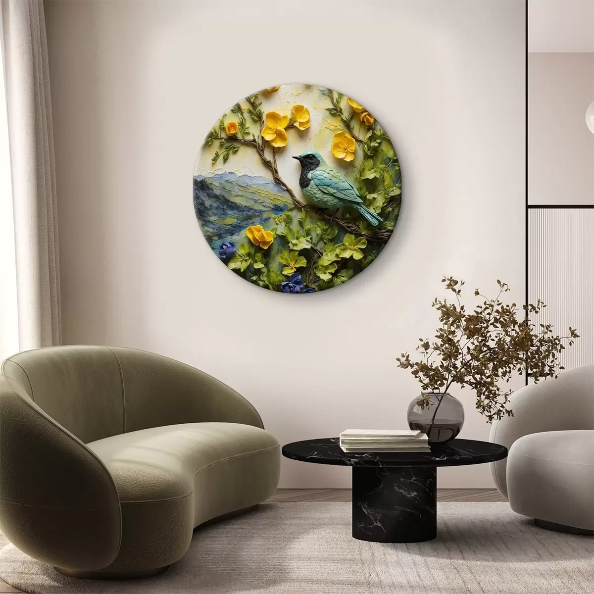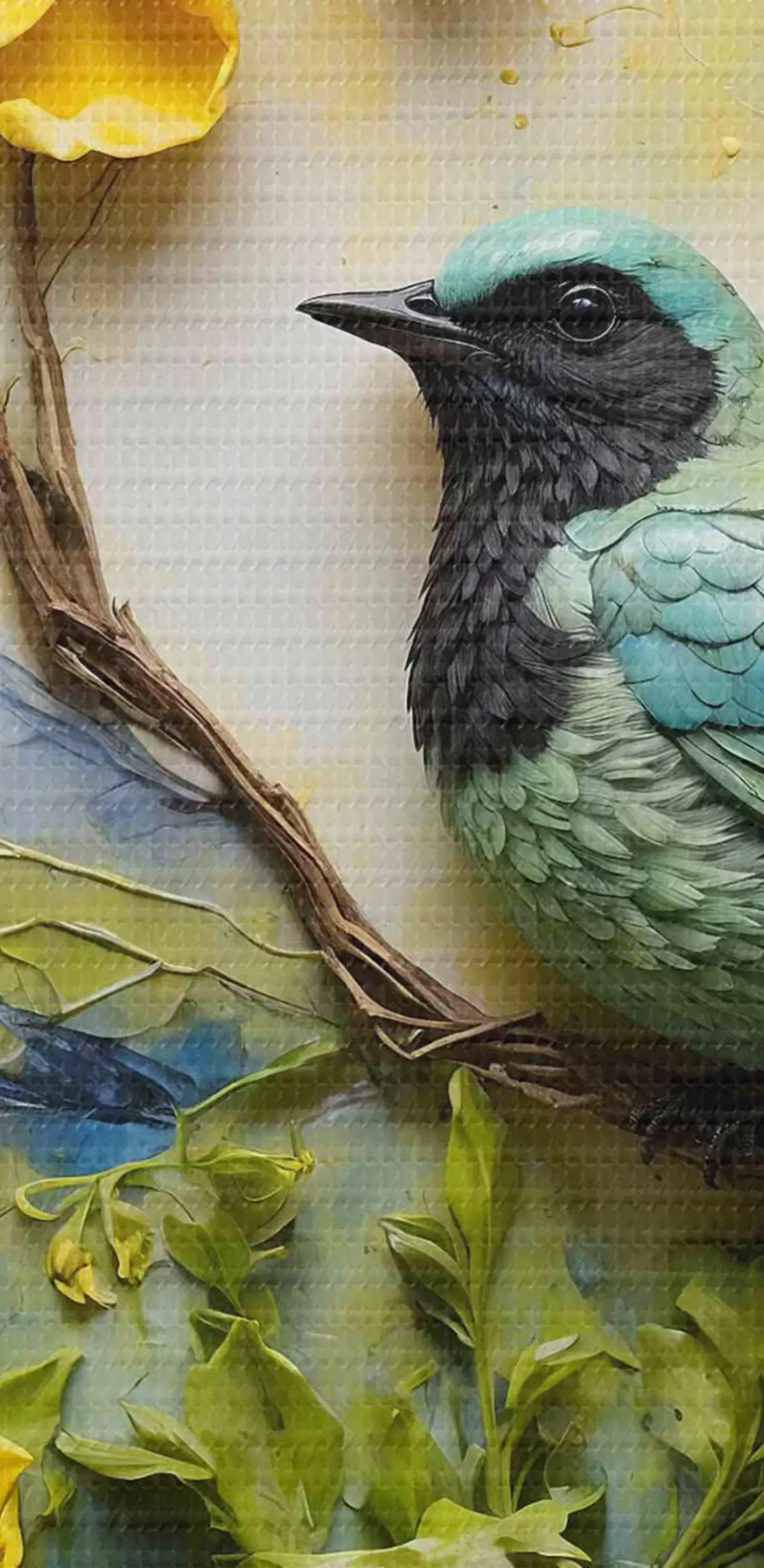 Obrázek Pták na větvi stromu obklopený květinami Nr r38431