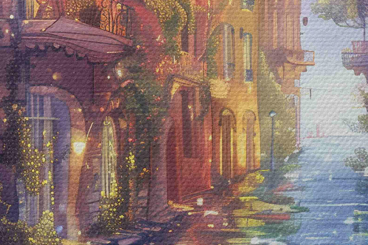 Lakování vytváří na plátně další ochrannou vrstvu. Obraz bude odolnější vůči drobným poškozením a k osvěžení nalakovaného obrazu jej můžete otřít měkkým, mírně navlhčeným hadříkem.