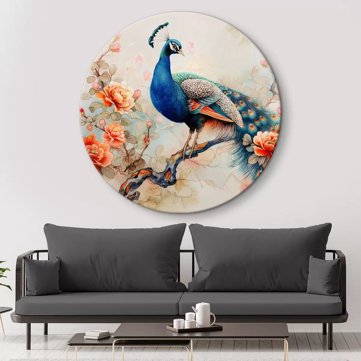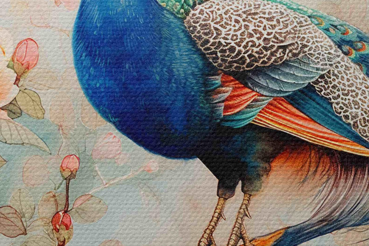 Obrázek Obraz páva na větvi s květinami Nr r38452