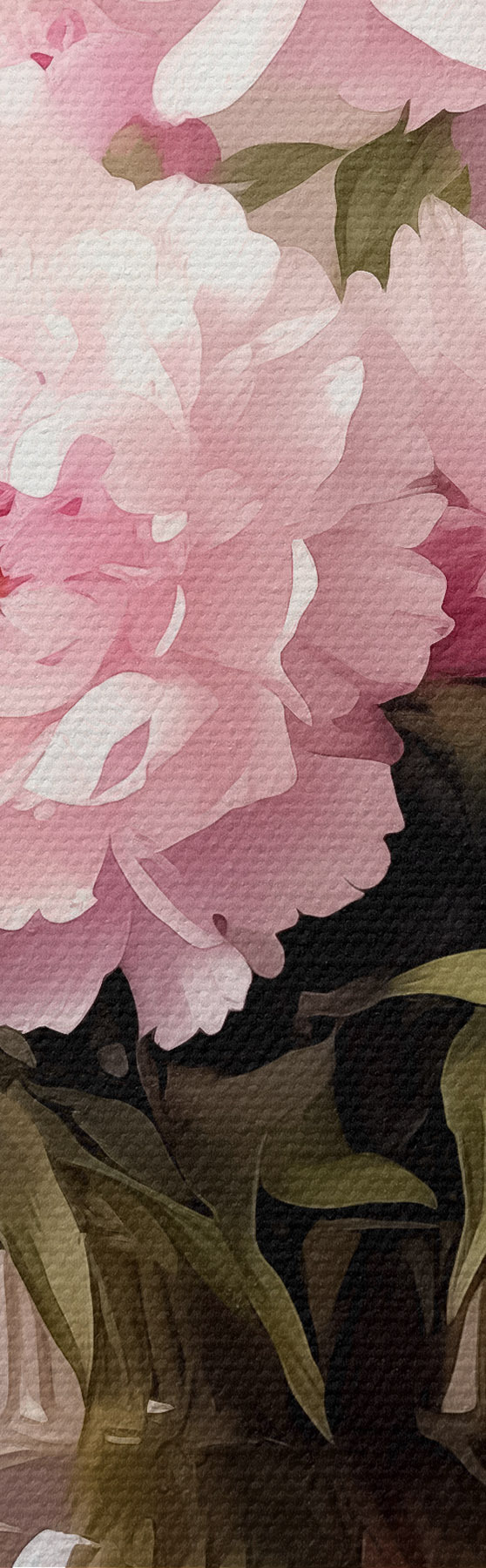 Obrázek Růžové pivoňky ve skleněné váze na černém pozadí, imitace olejomalby, květiny Nr r38482
