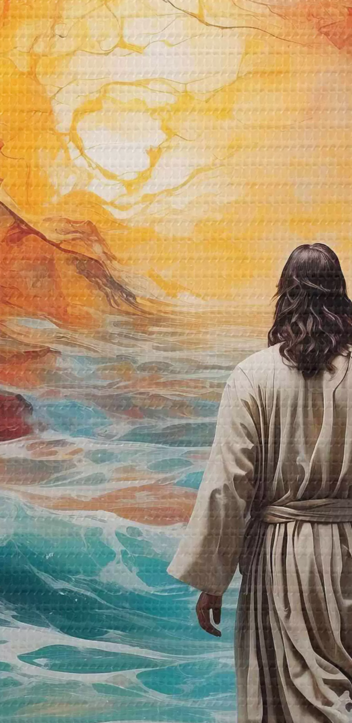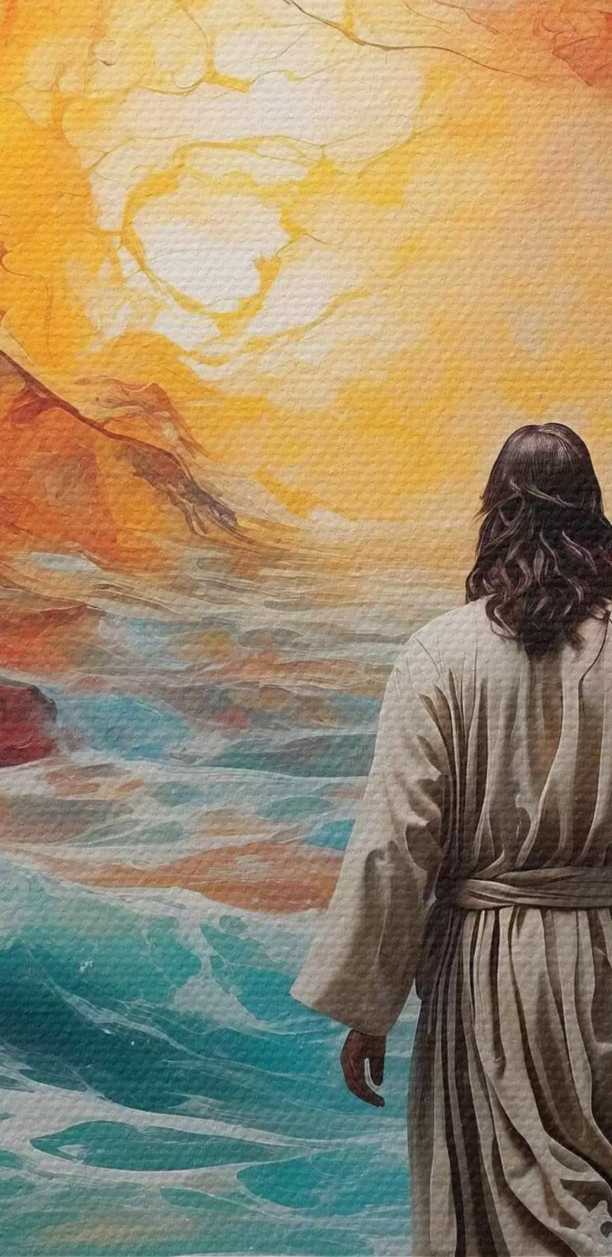 Obrázek Muž kráčí mezi ohnivým nebem a mořem Nr r38612