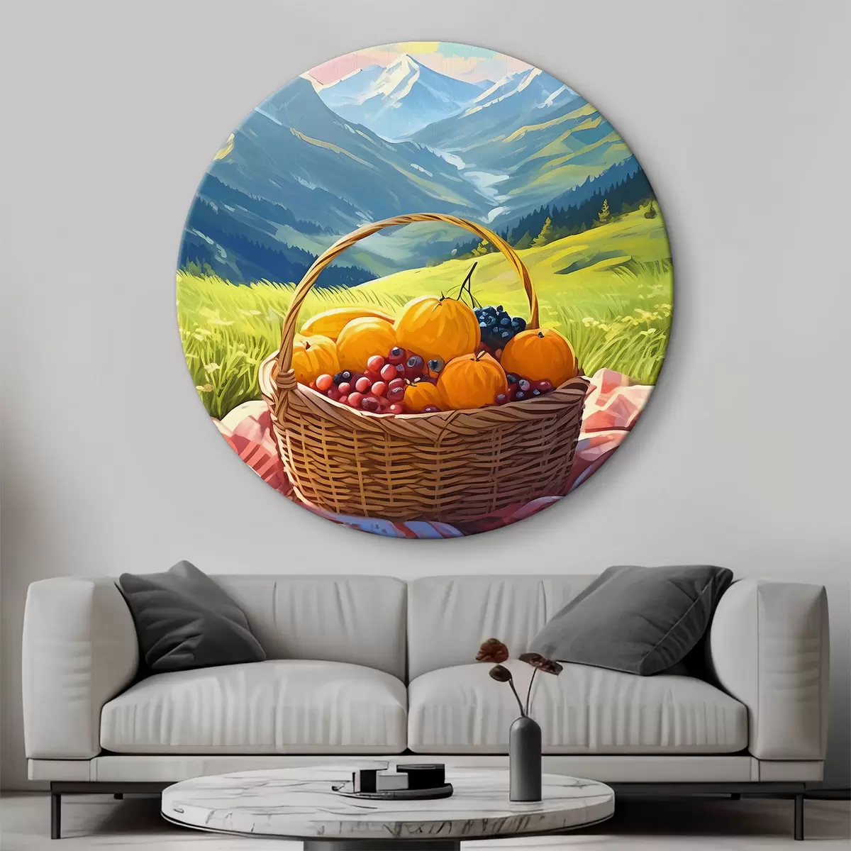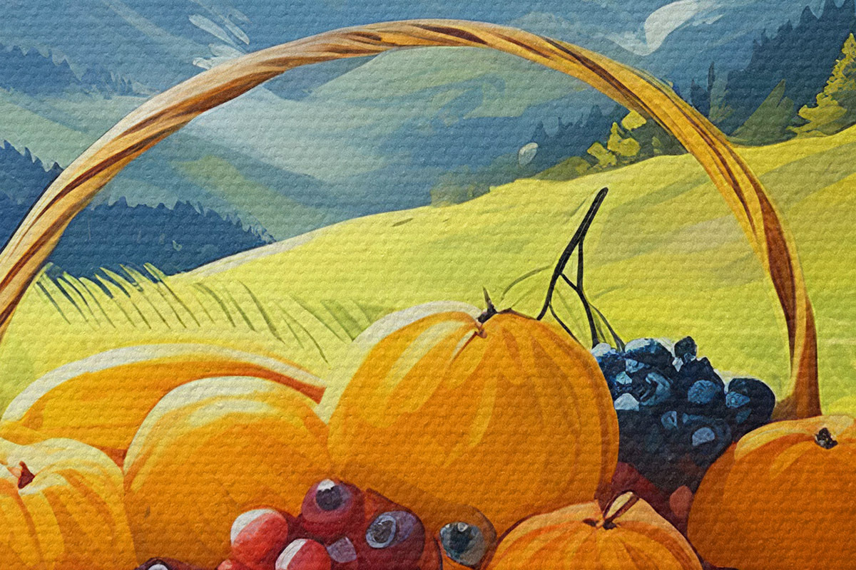 Obrázek košík ovoce na louce v horách Nr r38654