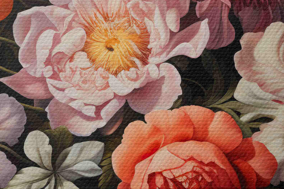 K objednání jsou k dispozici tři typy materiálu: Economic Canvas - hustý a odolný materiál pro digitální tisk, identický s malířským plátnem, voděodolný povrch, realistická reprodukce detailů, středně zrnitý materiál. Prémiové plátno - struktura připomíná malířské plátno (proplétané drobné nitě). Měkká, detailní reprodukce obrazu na matném povrchu. Eco-Premium - vysoce kvalitní tkanina ze 100% bavlny. Díky přírodním bavlněným vláknům je materiál trvanlivý a odolný proti opotřebení. Vynikající reprodukce barev a detailů.