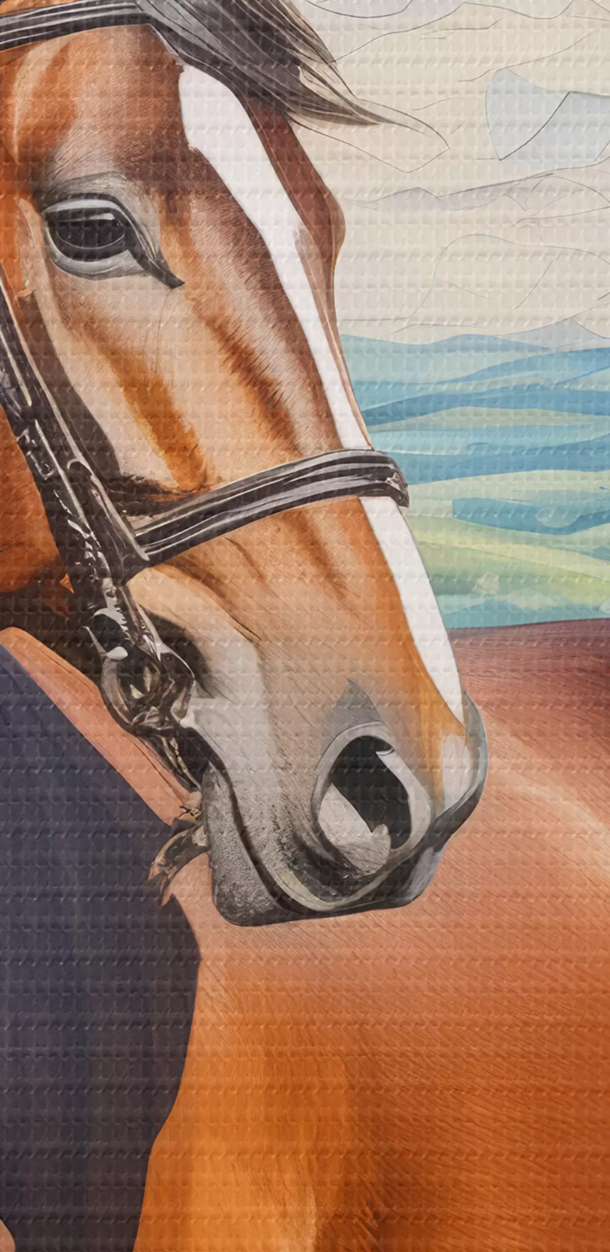 Obrázek Krásný kůň na trávníku, modrá obloha Nr r38727