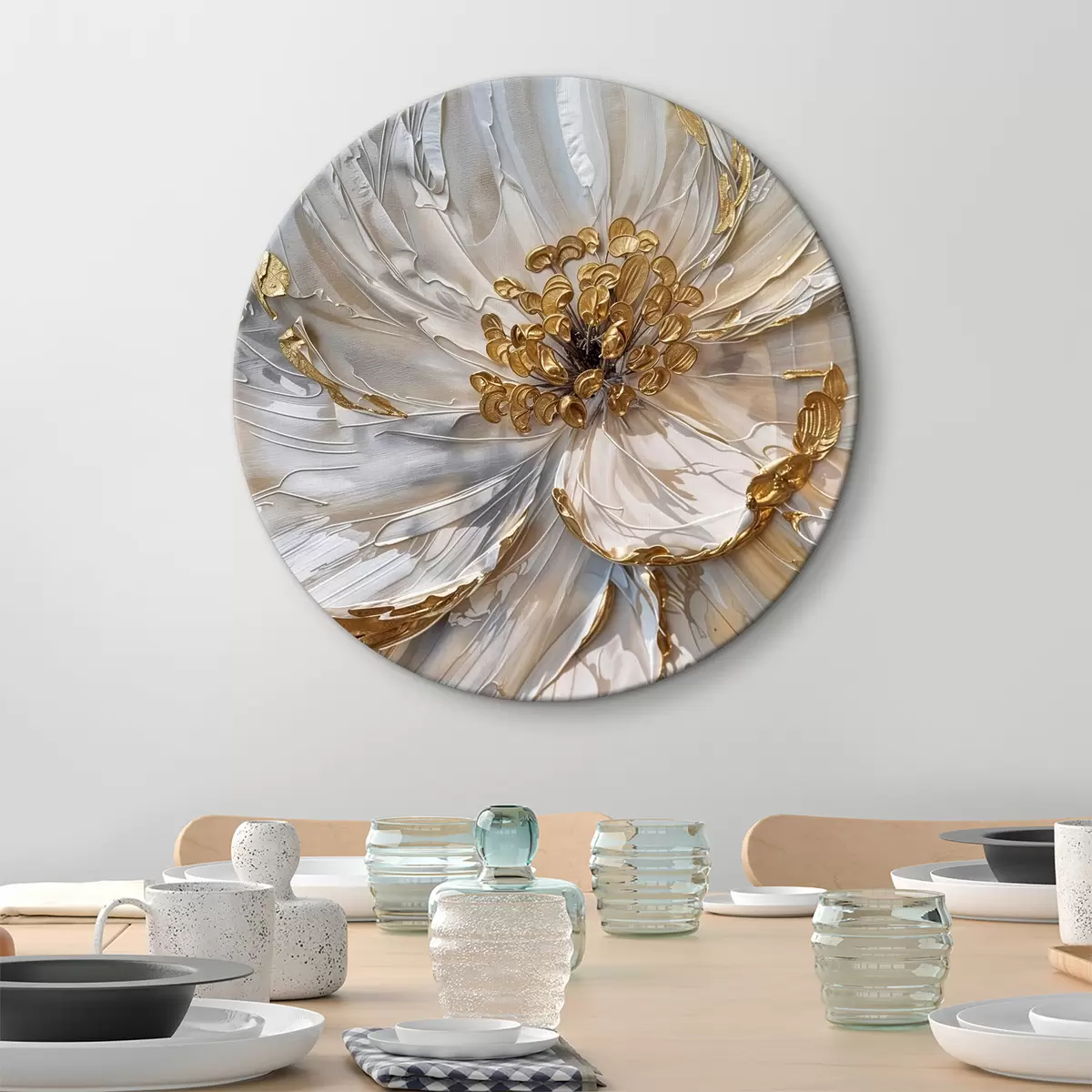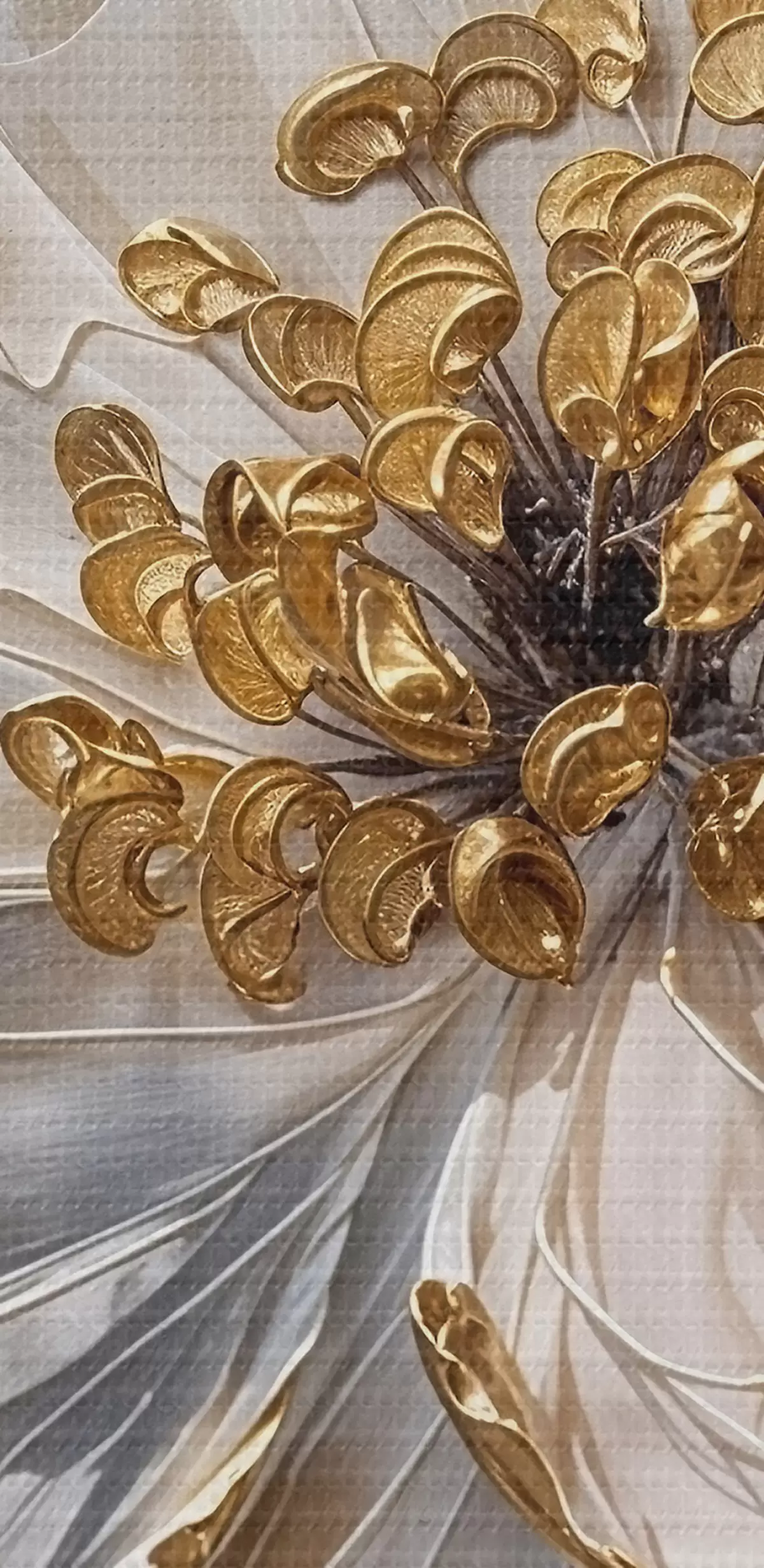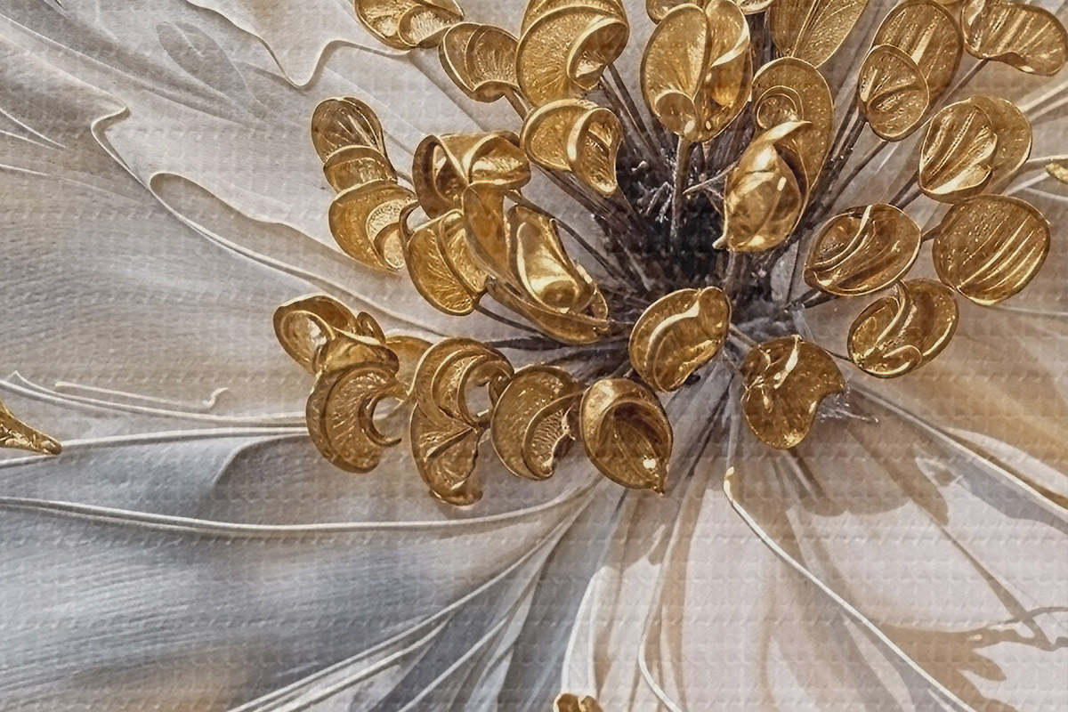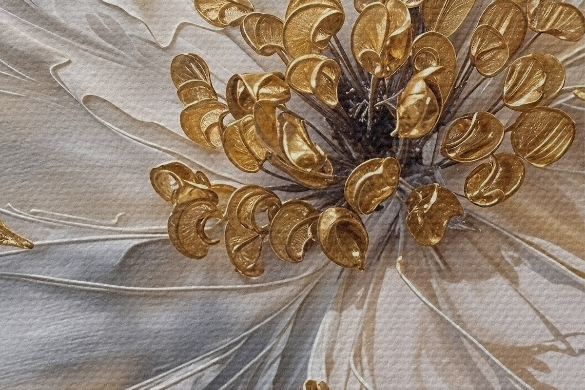 Obrázek Detail velkého bílého květu se žlutými tyčinkami uprostřed, umělecká dekorace malovaná olejem Nr r38755