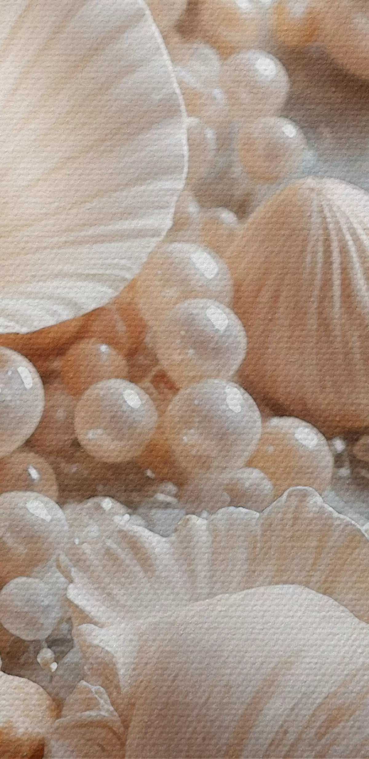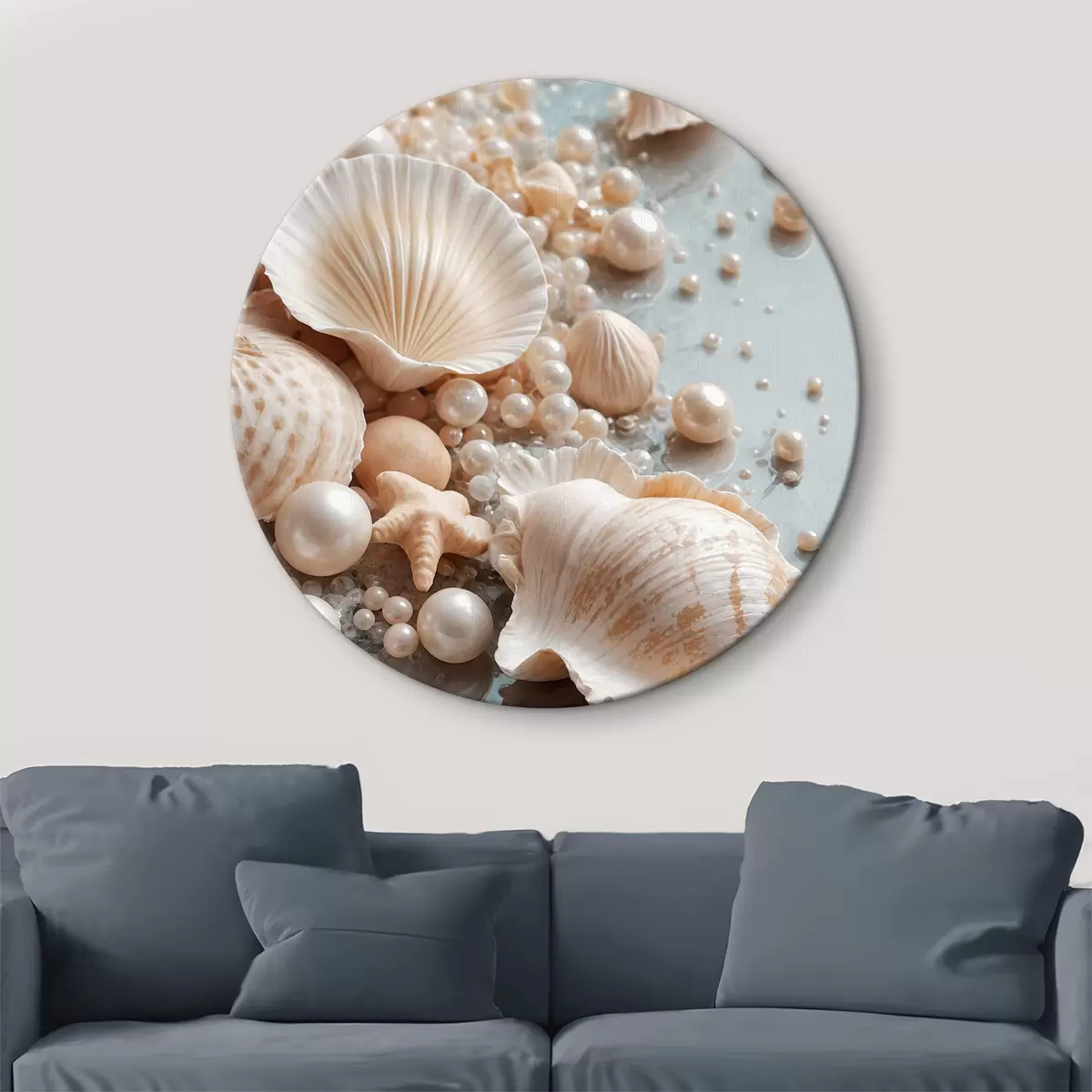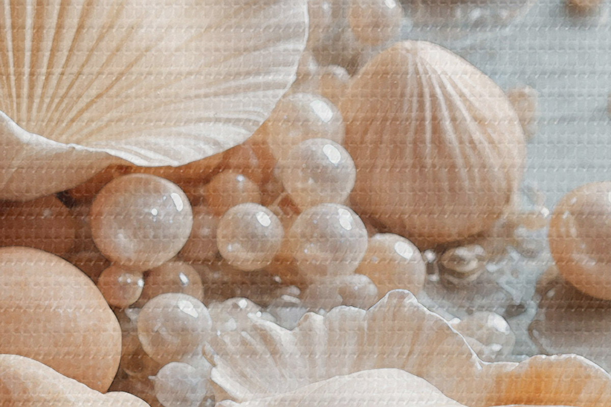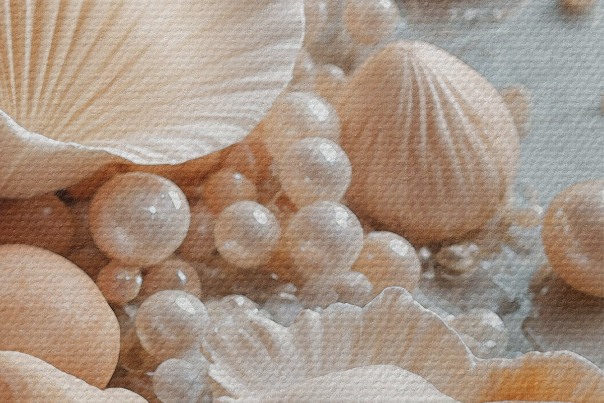 Obrázek Různé mušle a perly na světle modrém pozadí Nr r38769