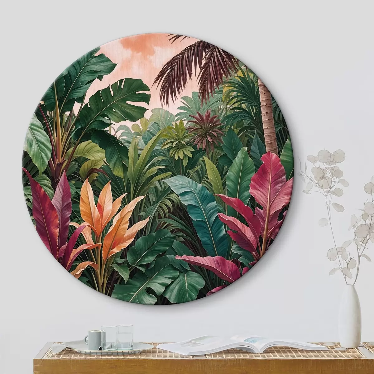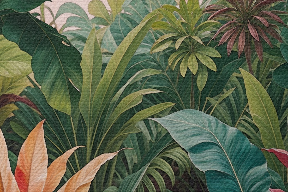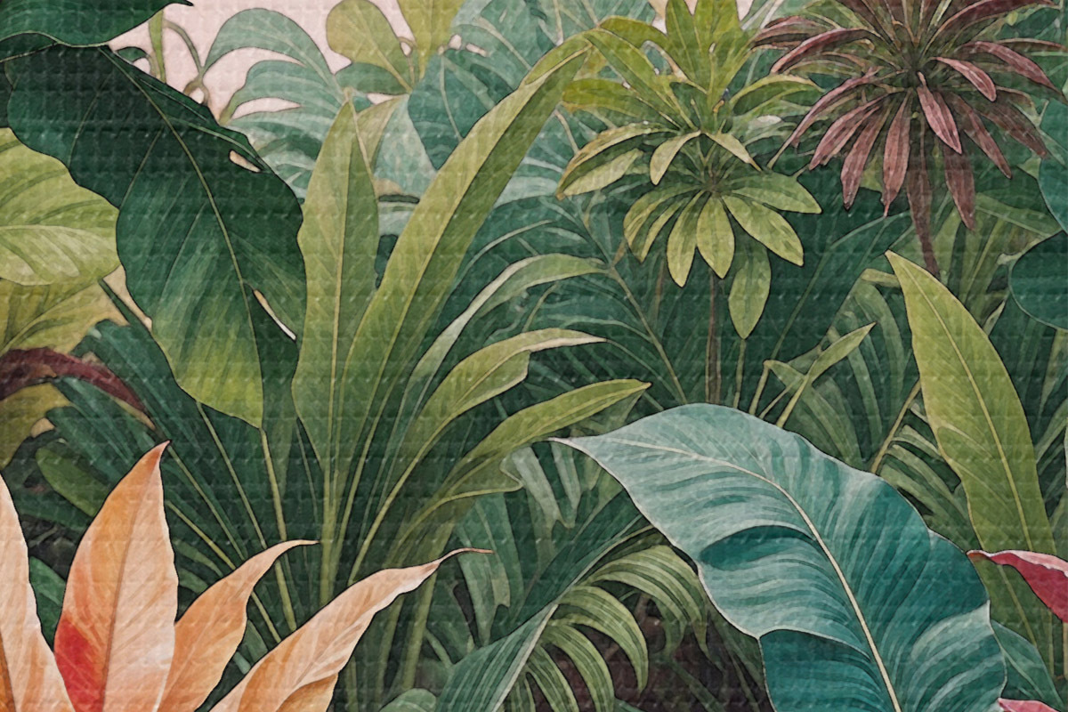 Obrázek Svěží tropická džungle se zářivě zelenými listy, palmovými listy a barevnými květy Nr r38817