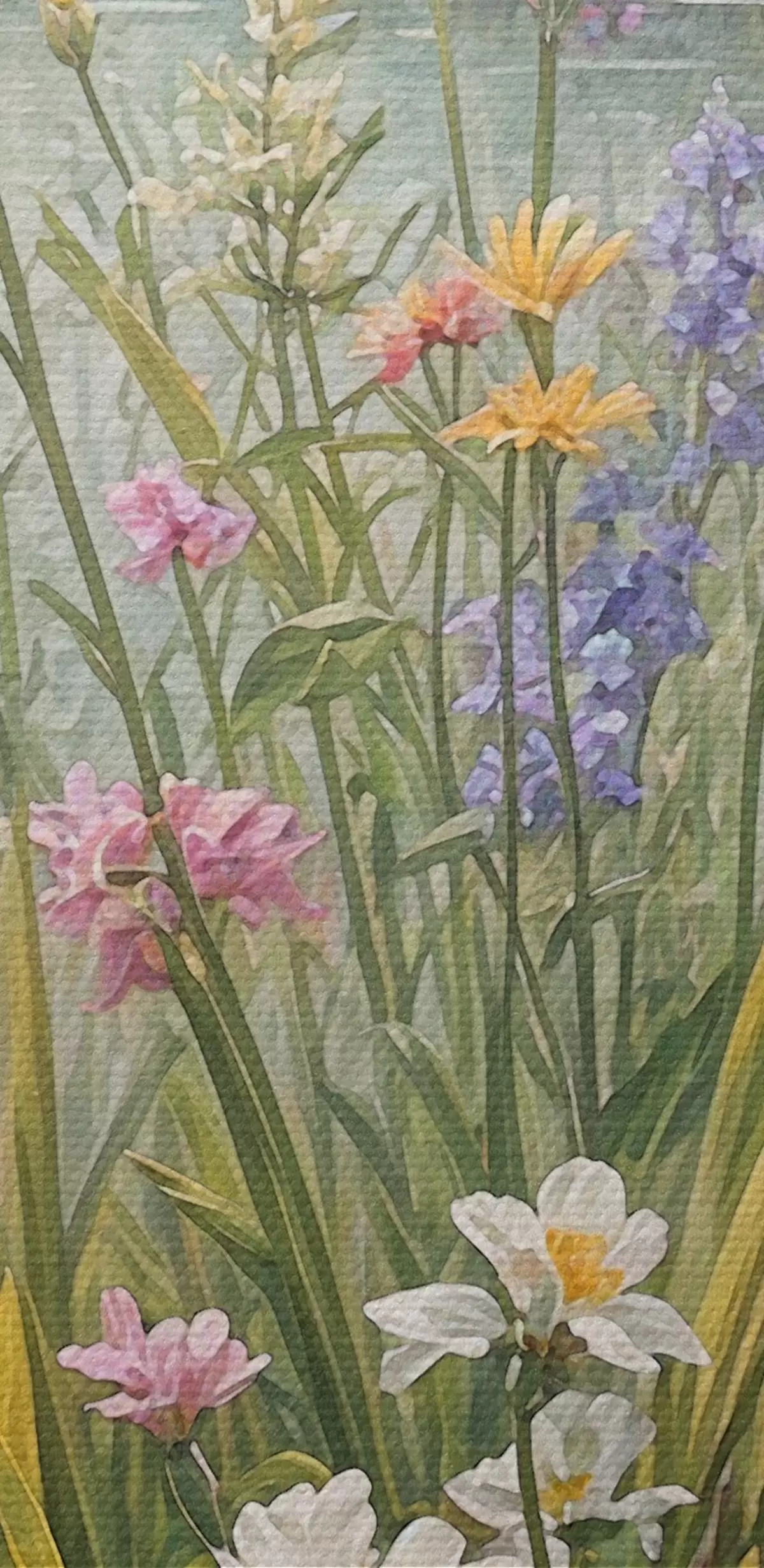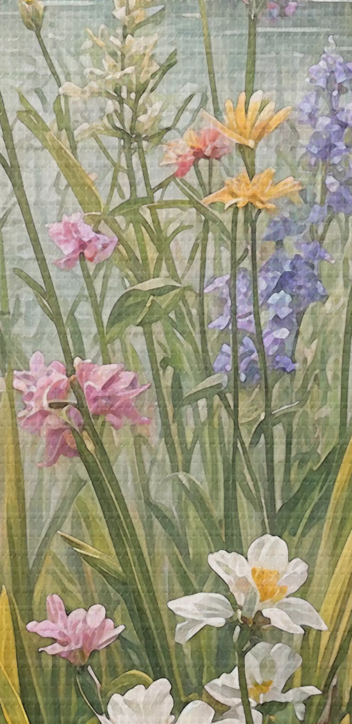 Obrázek Divoké květiny a vysoké trávy. Celková scéna zobrazuje živoucí, přírodní krajinu Nr r38829