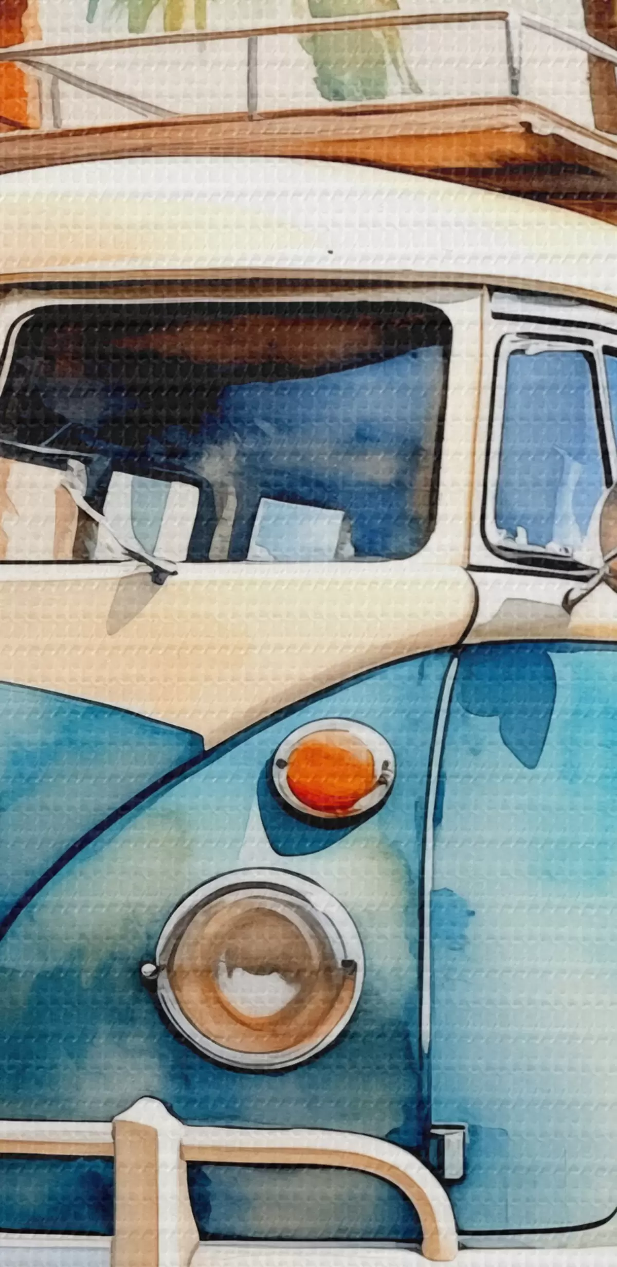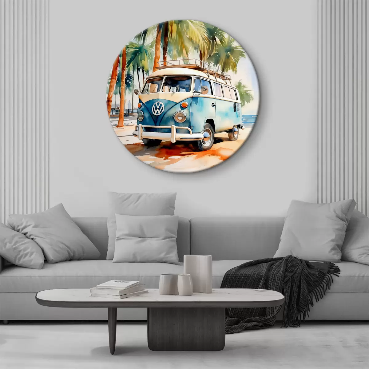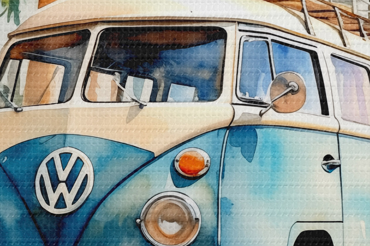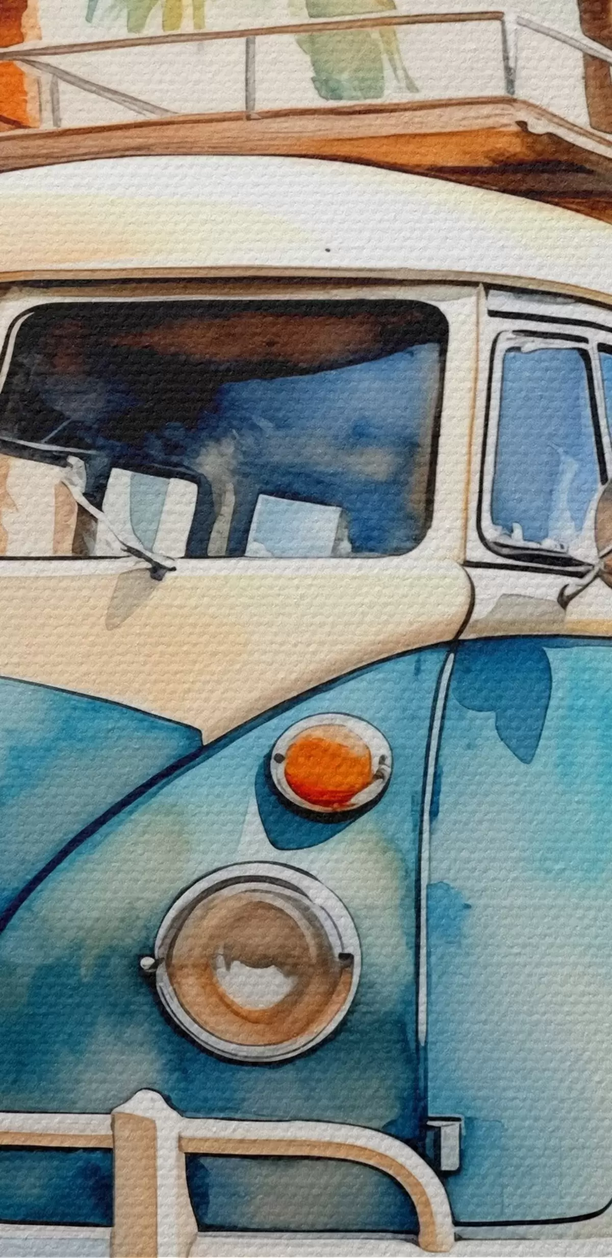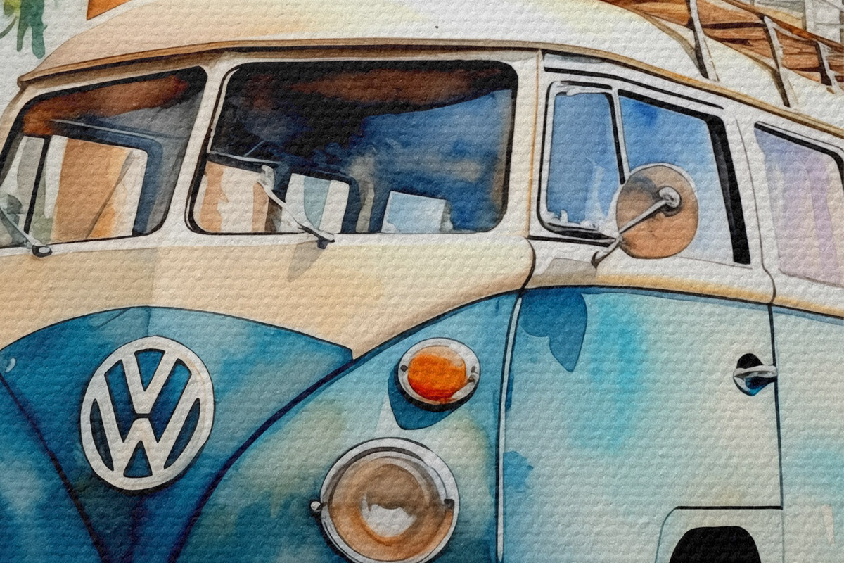 Obrázek Cestovní auto je zaparkováno na pláži na pozadí akvarelu palem Nr r38911