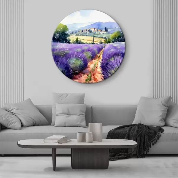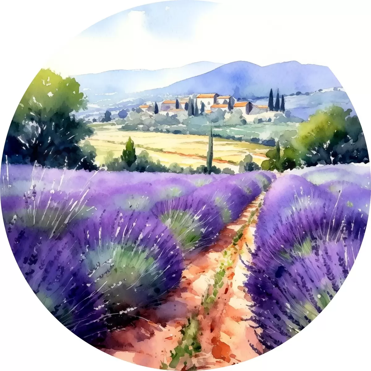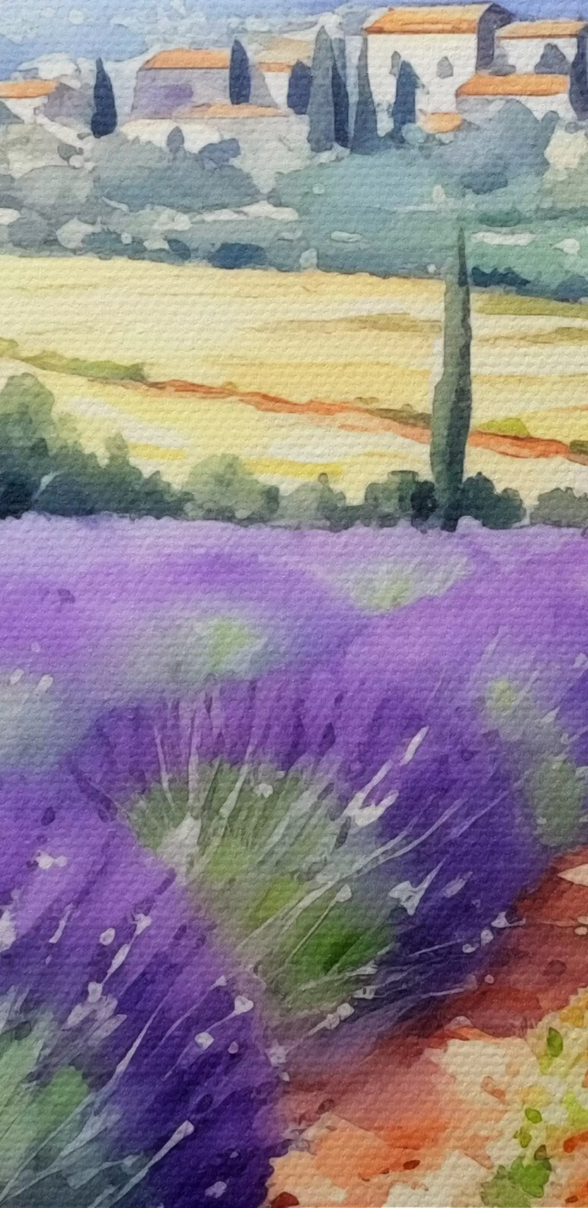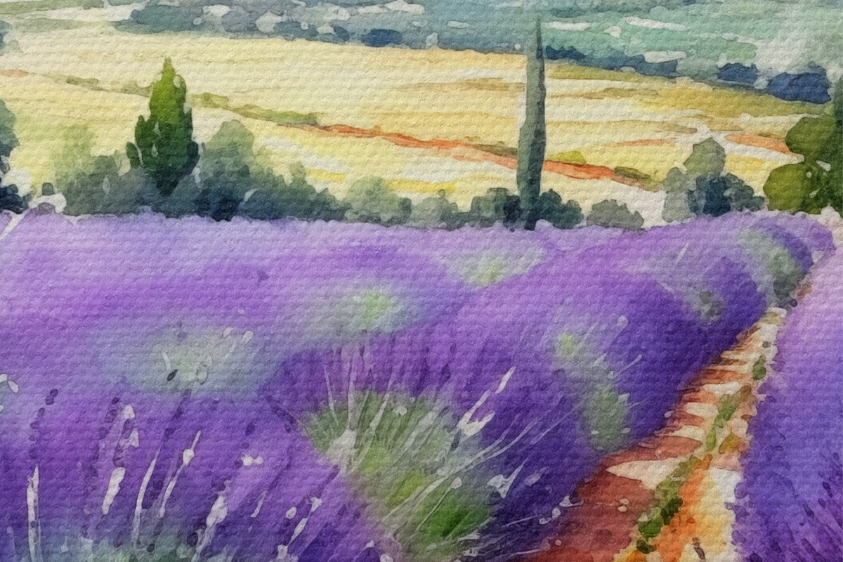 Obrázek Akvarel levandulové pole na pozadí hor a krajiny Nr r38913