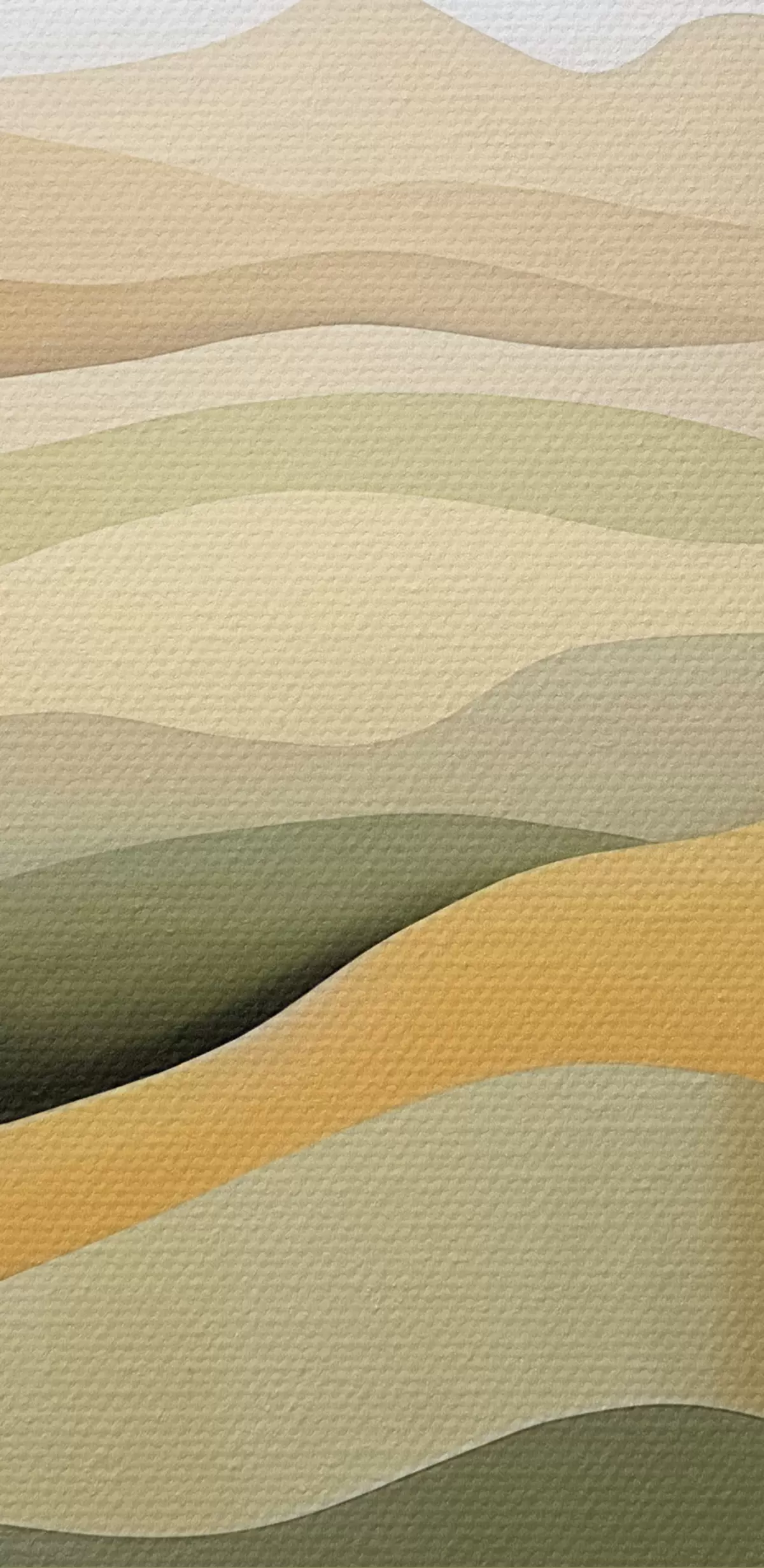 Obrázek Kopce, abstraktní krajina, kvaš, zelená, okrová, sépie, šedá Nr r38952