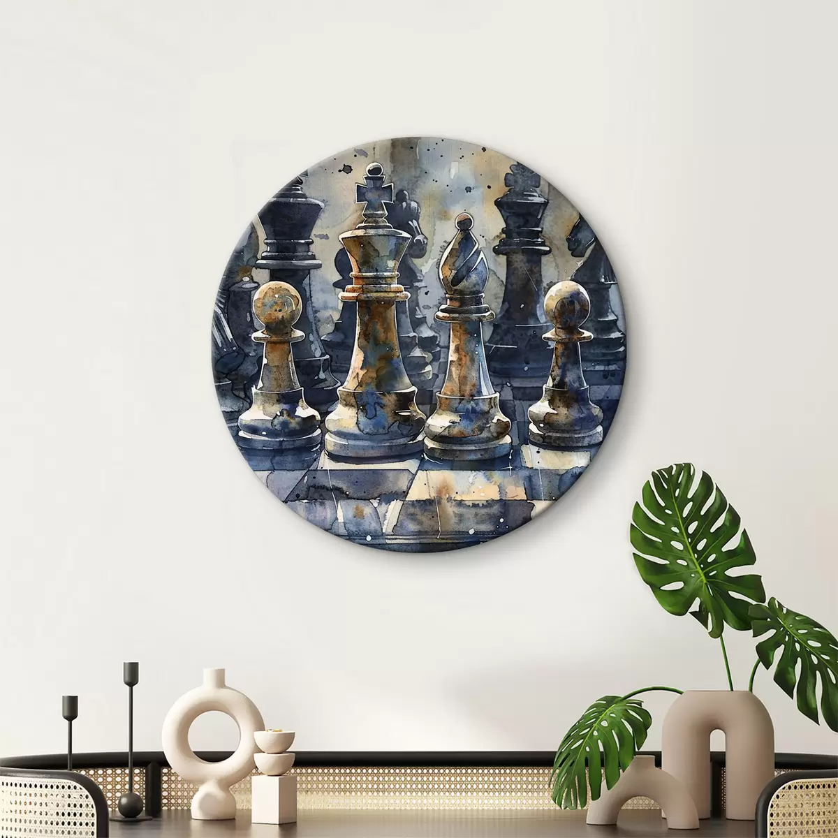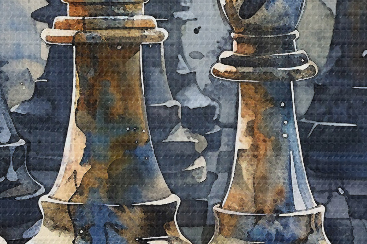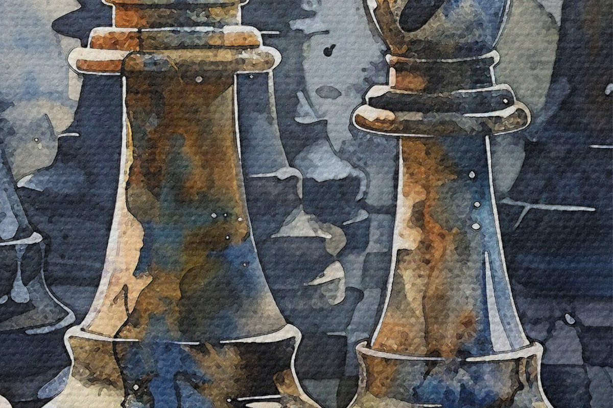 Obrázek Detailní pohled na akvarel na šachy vyrobené z kovu nebo kamene s detailními vzory a texturami Nr r38960