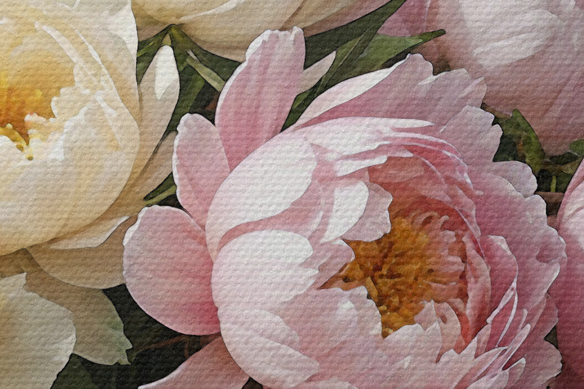 K objednání jsou k dispozici tři typy materiálu: Economic Canvas - hustý a odolný materiál pro digitální tisk, identický s malířským plátnem, voděodolný povrch, realistická reprodukce detailů, středně zrnitý materiál. Prémiové plátno - struktura připomíná malířské plátno (proplétané drobné nitě). Měkká, detailní reprodukce obrazu na matném povrchu. Eco-Premium - vysoce kvalitní tkanina ze 100% bavlny. Díky přírodním bavlněným vláknům je materiál trvanlivý a odolný proti opotřebení. Vynikající reprodukce barev a detailů.