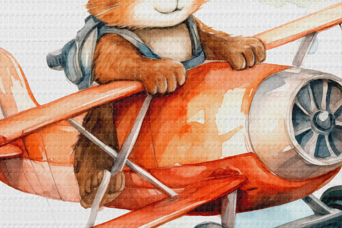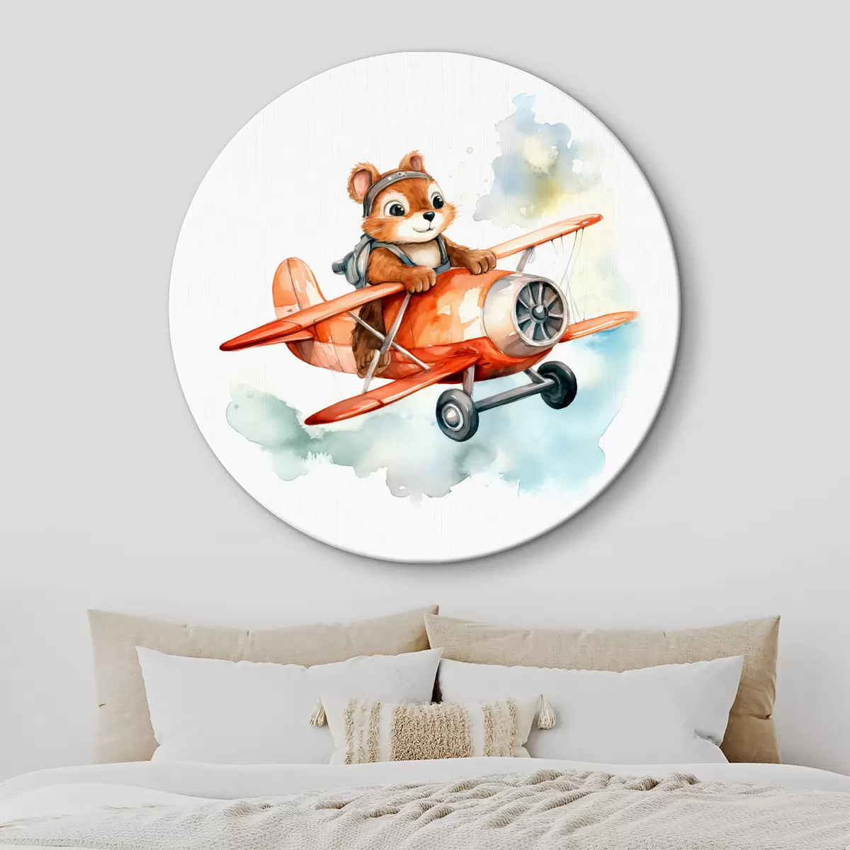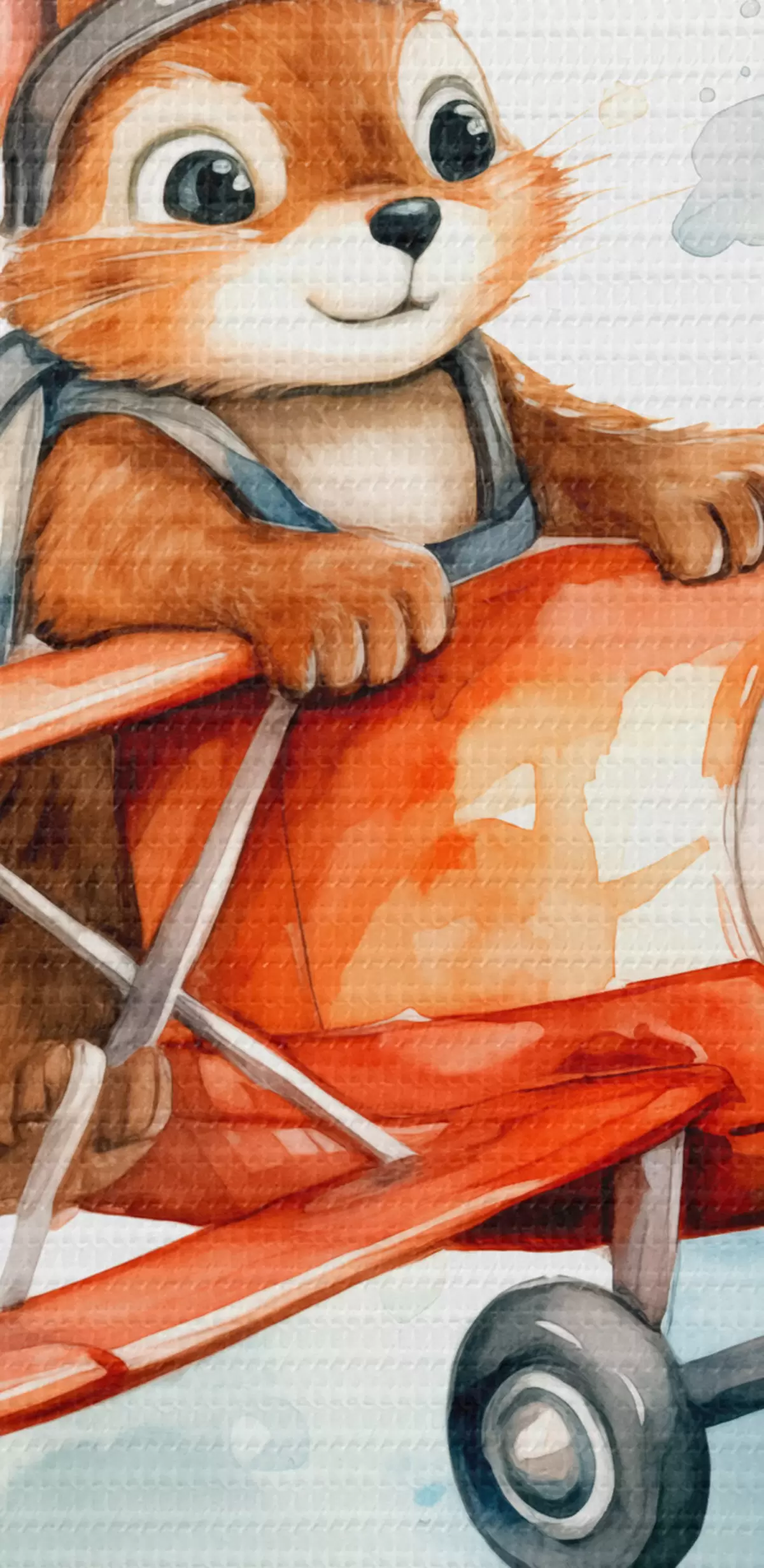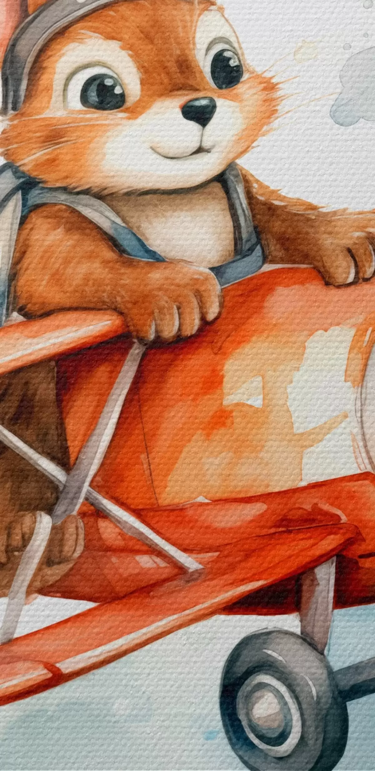 Obrázek Dítě veverka létá v červeném letadle dětské ilustrace akvarel Nr r39116
