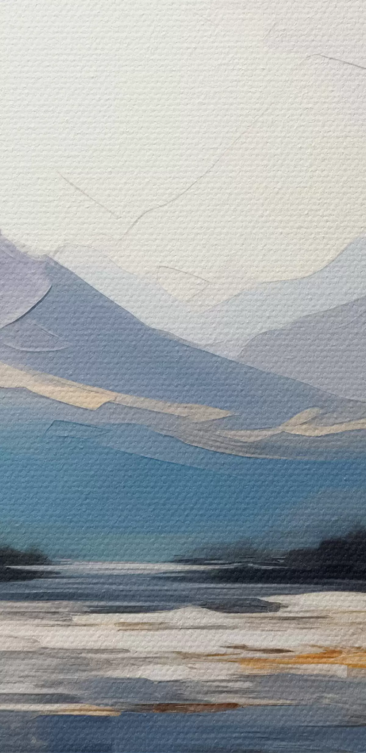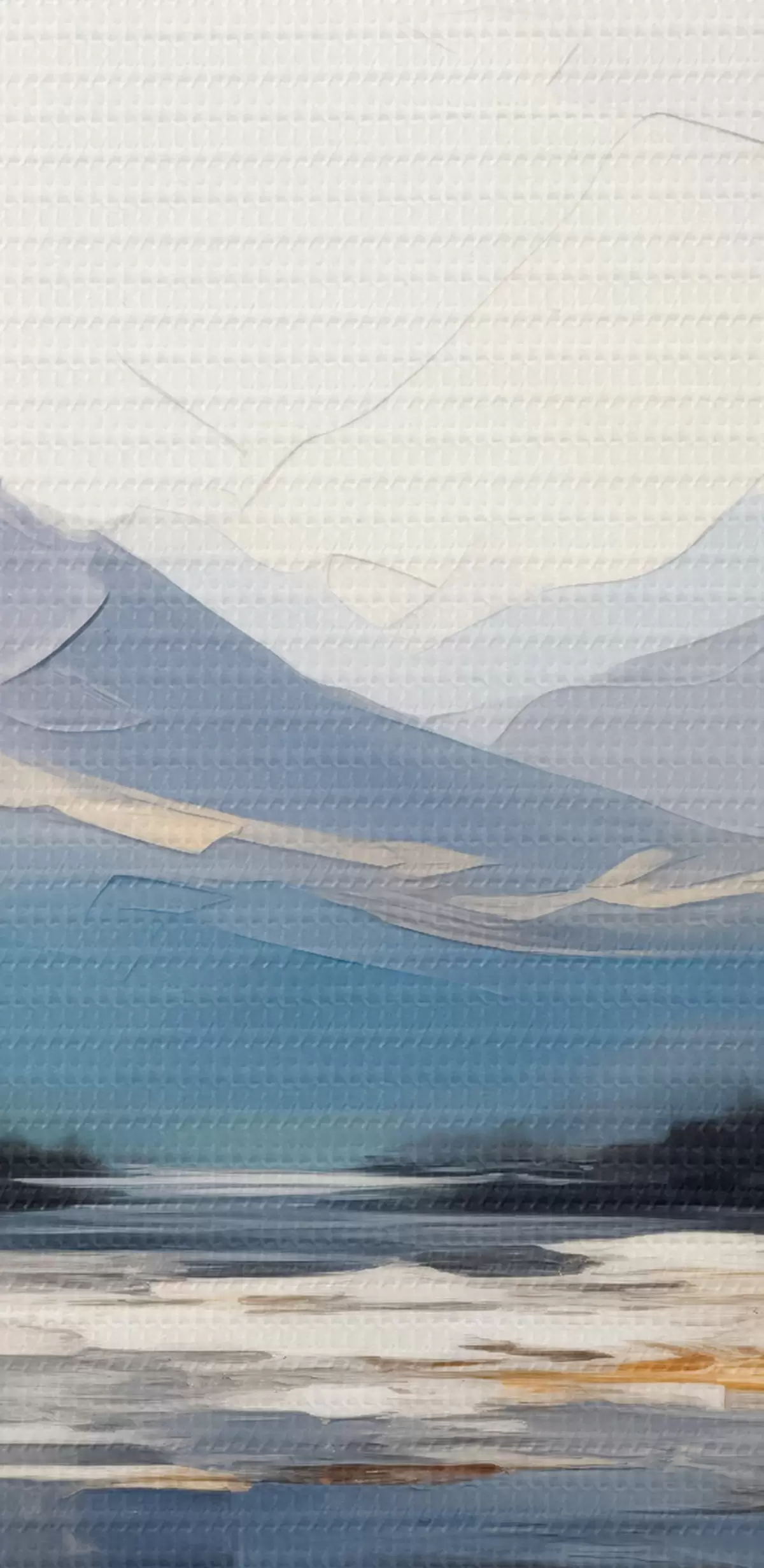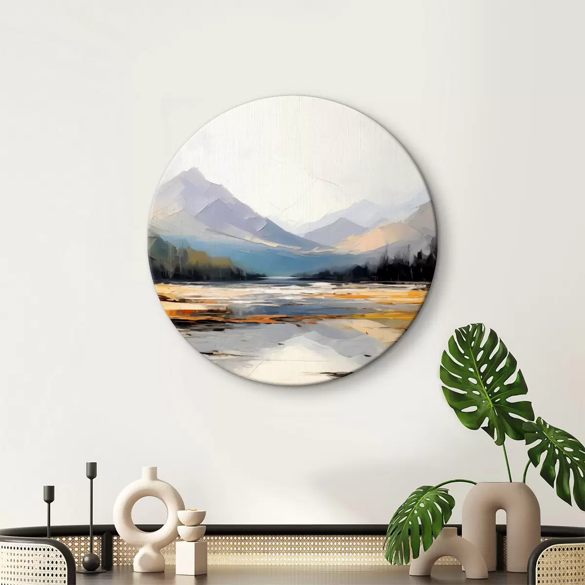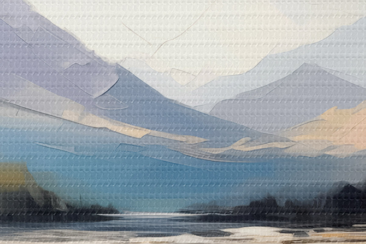 Obrázek Pohoří v údolí olejomalba, krajina, příroda, modrá, bílá žlutá barva Nr r39128