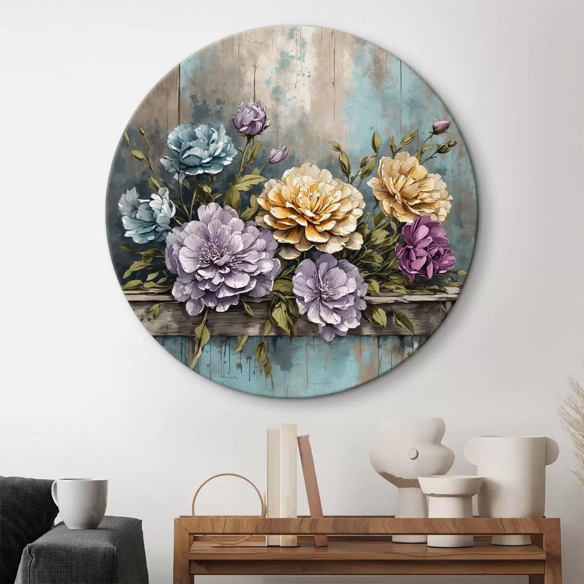 Obrázek Květiny a listy na staré dřevěné polici Nr r39169