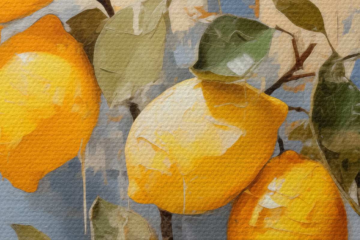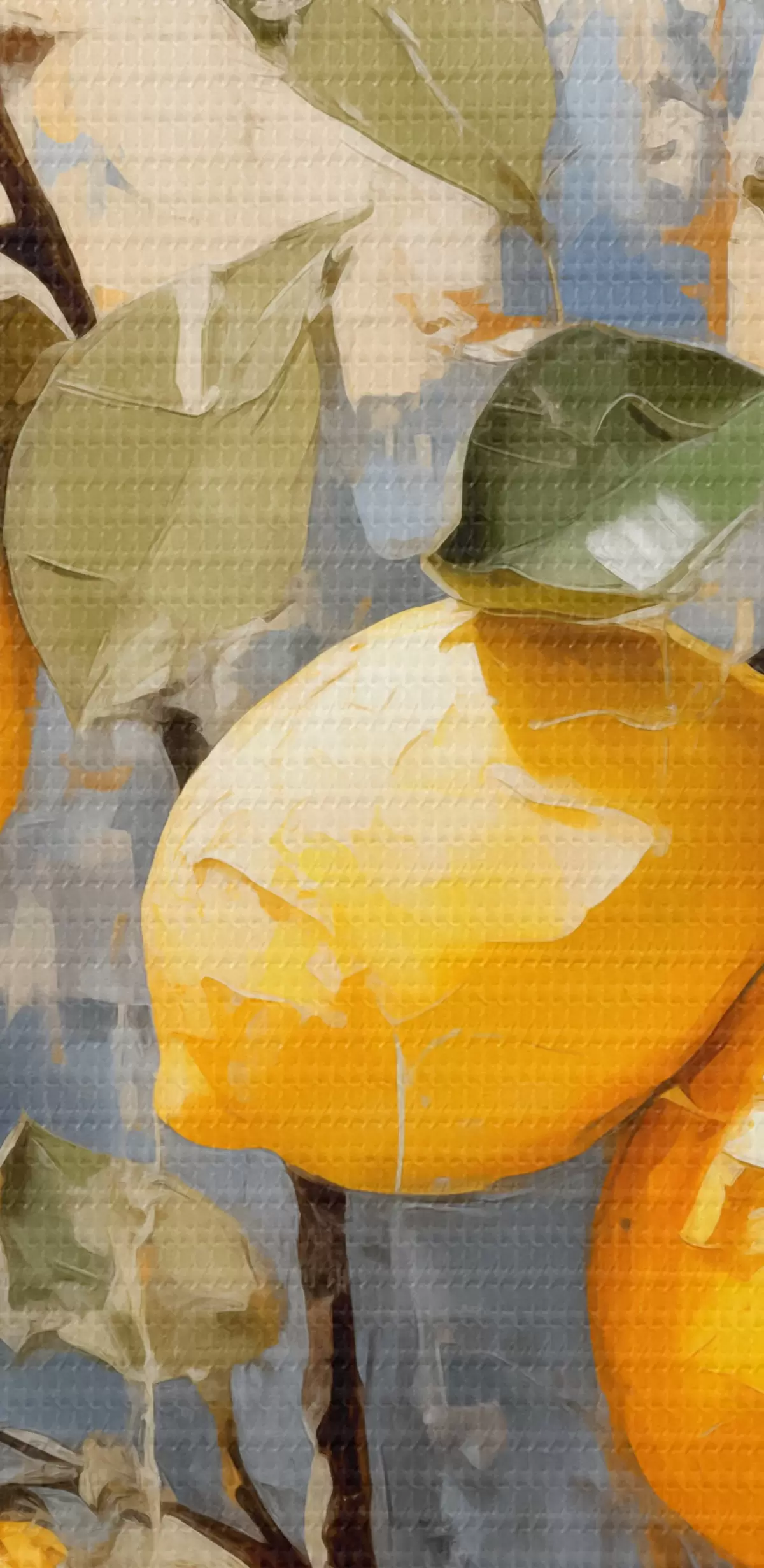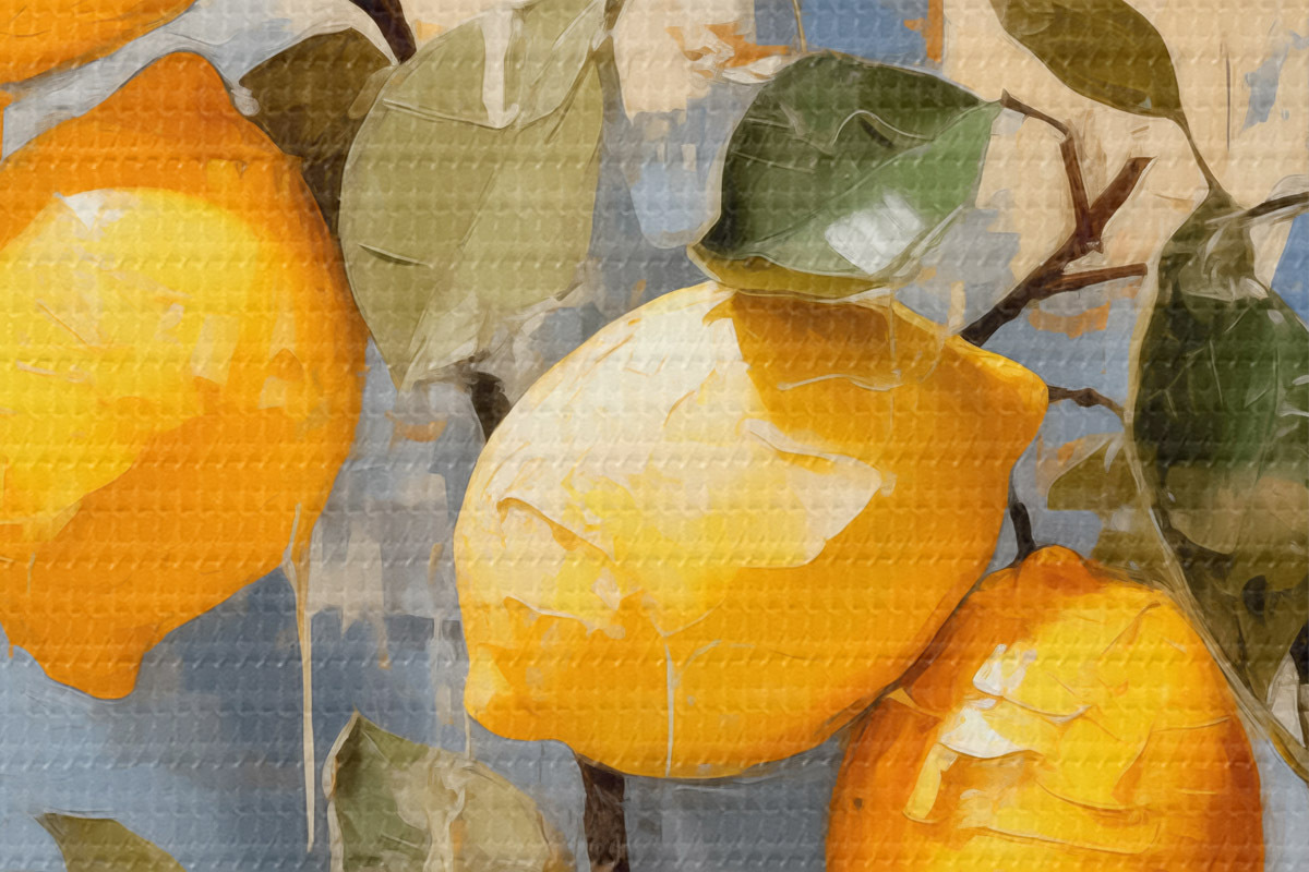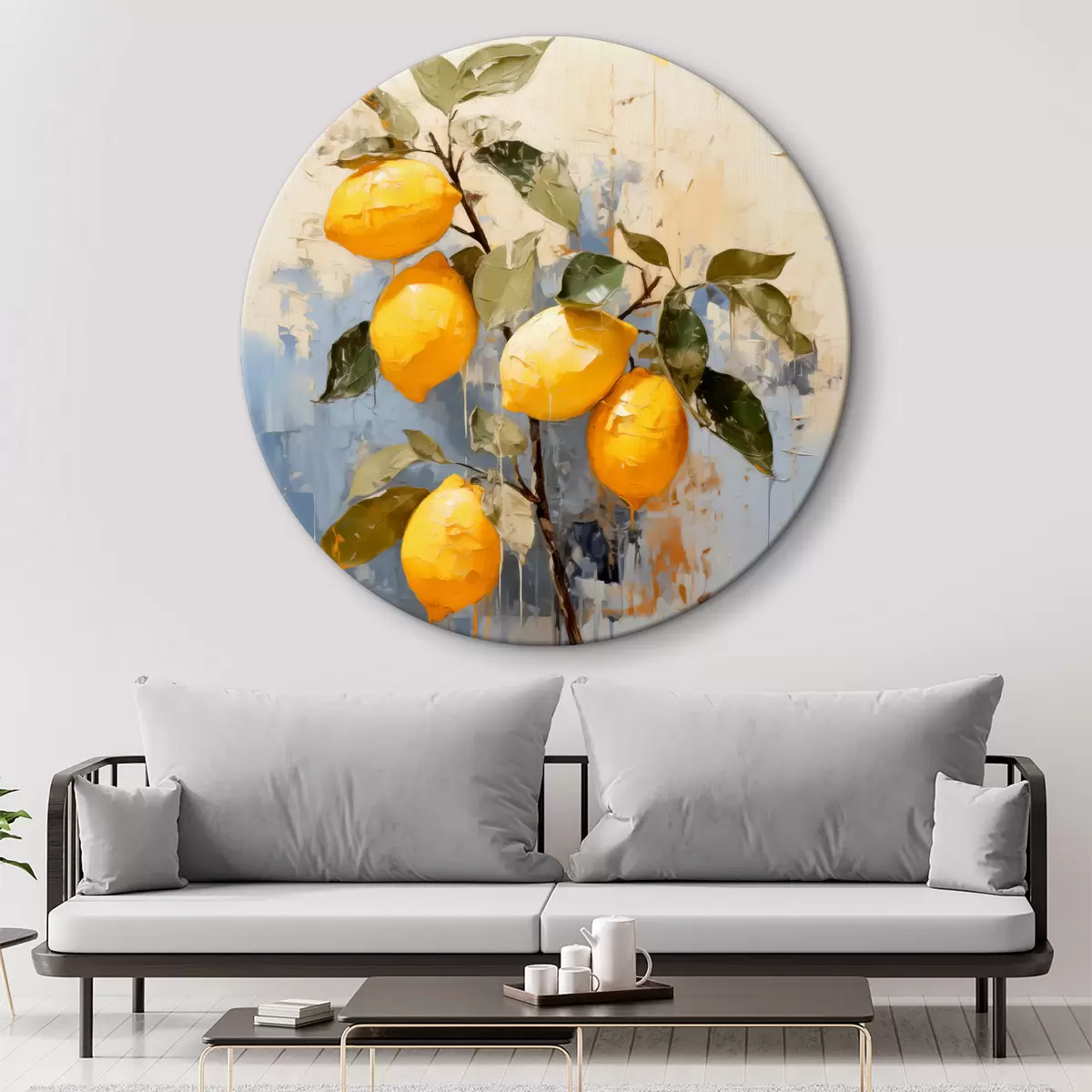 Obrázek Větev se zralými citrony olejomalba abstraktní umění, žlutá, modrá a zelená barva Nr r39186
