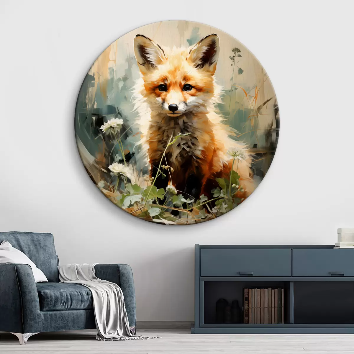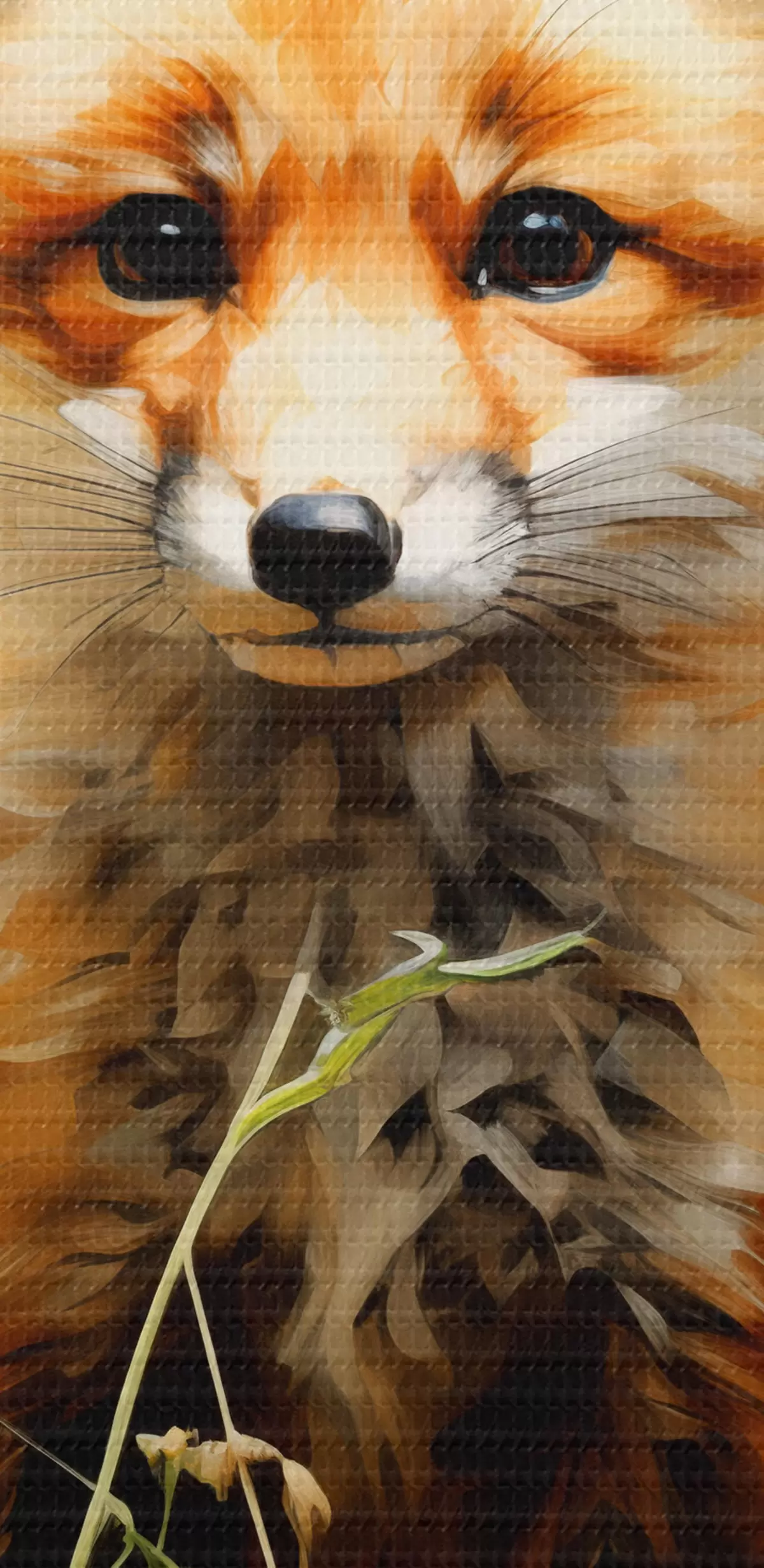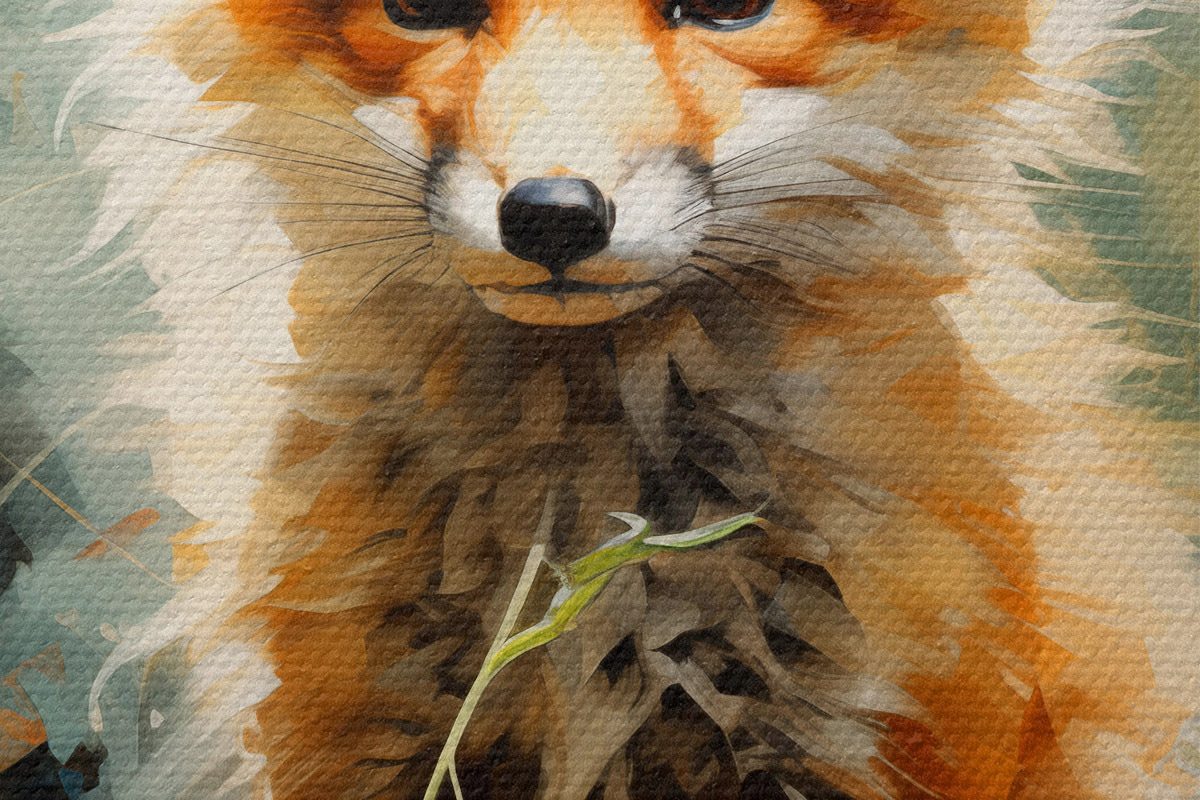 Obrázek Červená liška sedí v suché trávě na zeleném pozadí olejomalba Nr r39191