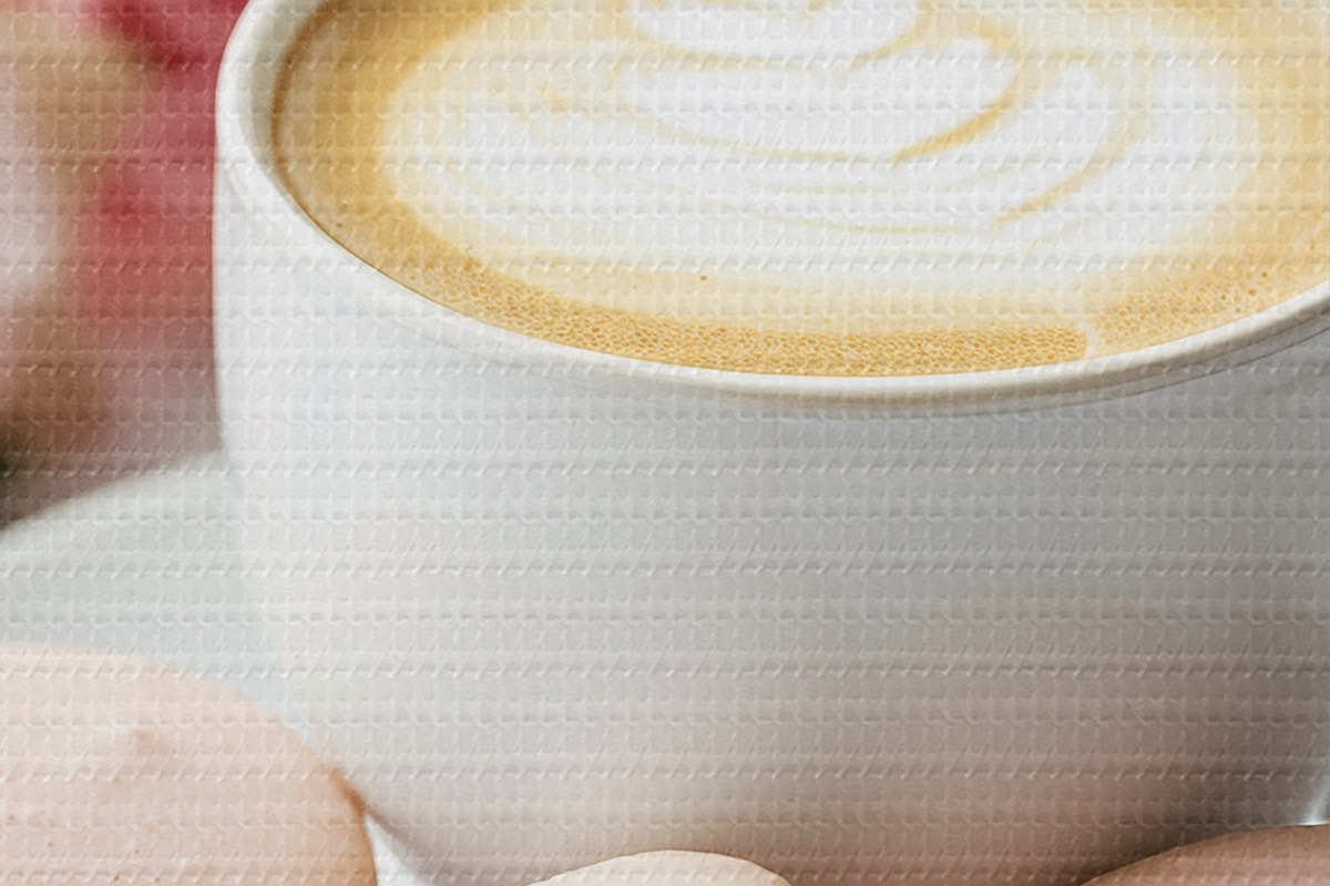 Obrázek Šálek kávy na jemné květinové pozadí Nr r39232