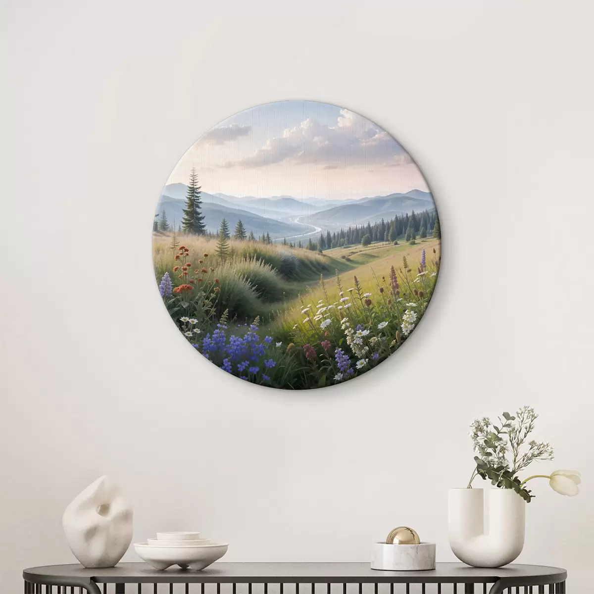 Obrázek Horská krajina s travnatou loukou v popředí plnou barevných lučních květin Nr r39382