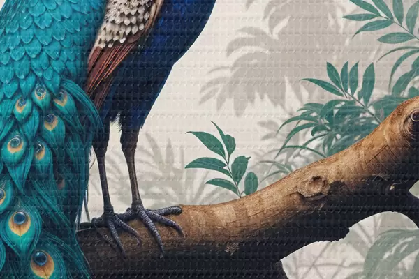 Obrázek Živý modrý páv posazený na větev stromu ve svěžím tropickém lese Nr r39401
