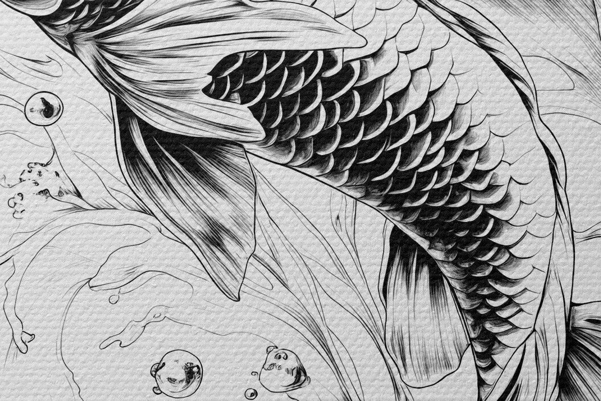 Obrázek Koi ryby monochromatický perokresba Nr r39433