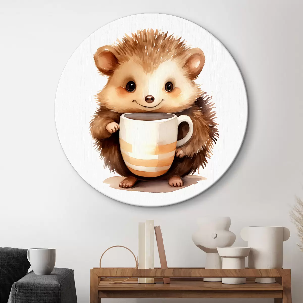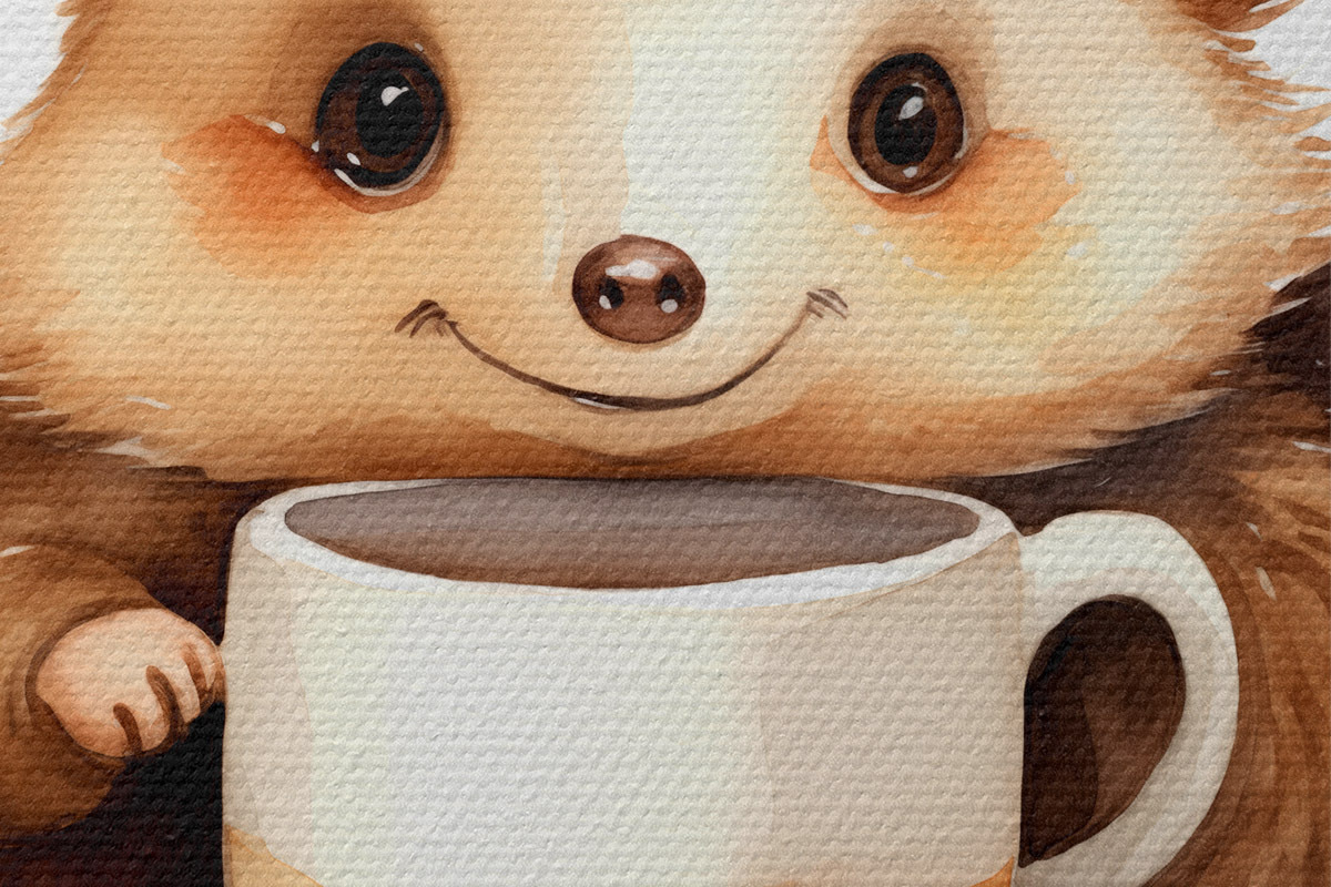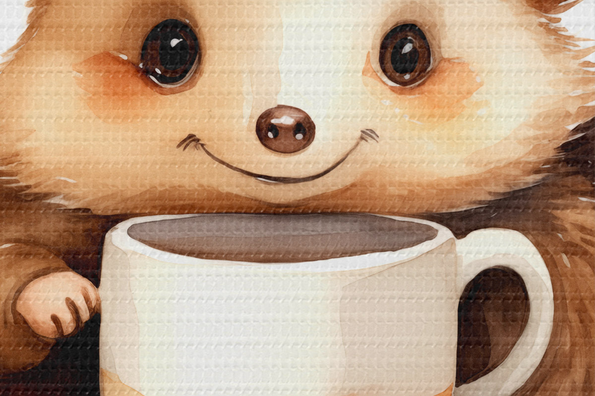 Obrázek Ježek držící bílý pohár v tlapkách akvarel dětské ilustrace Nr r39440
