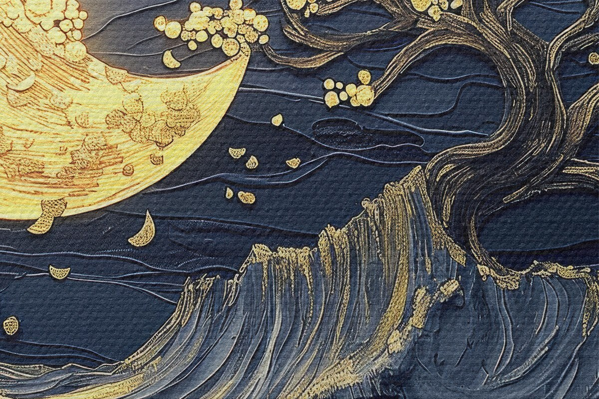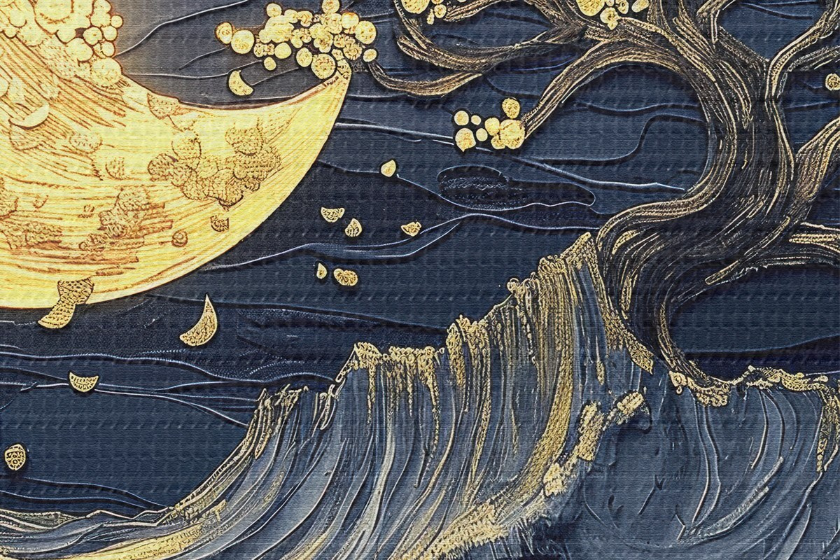 Obrázek Malba akrylem: romantické mořské krajiny s padajícím listím a odrazy měsíčního světla Nr r39449