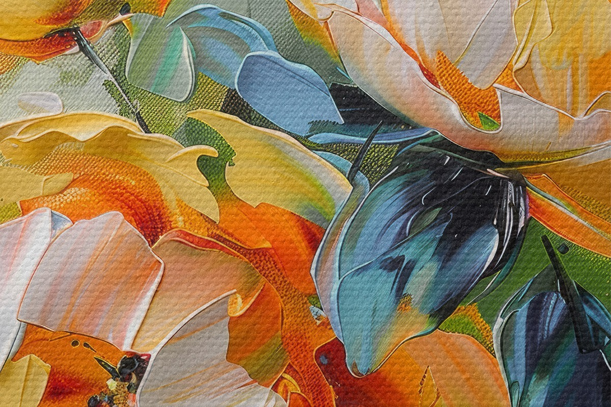 Obrázek Živé květy s bohatými texturami v barevné abstraktní kompozici Nr r39460