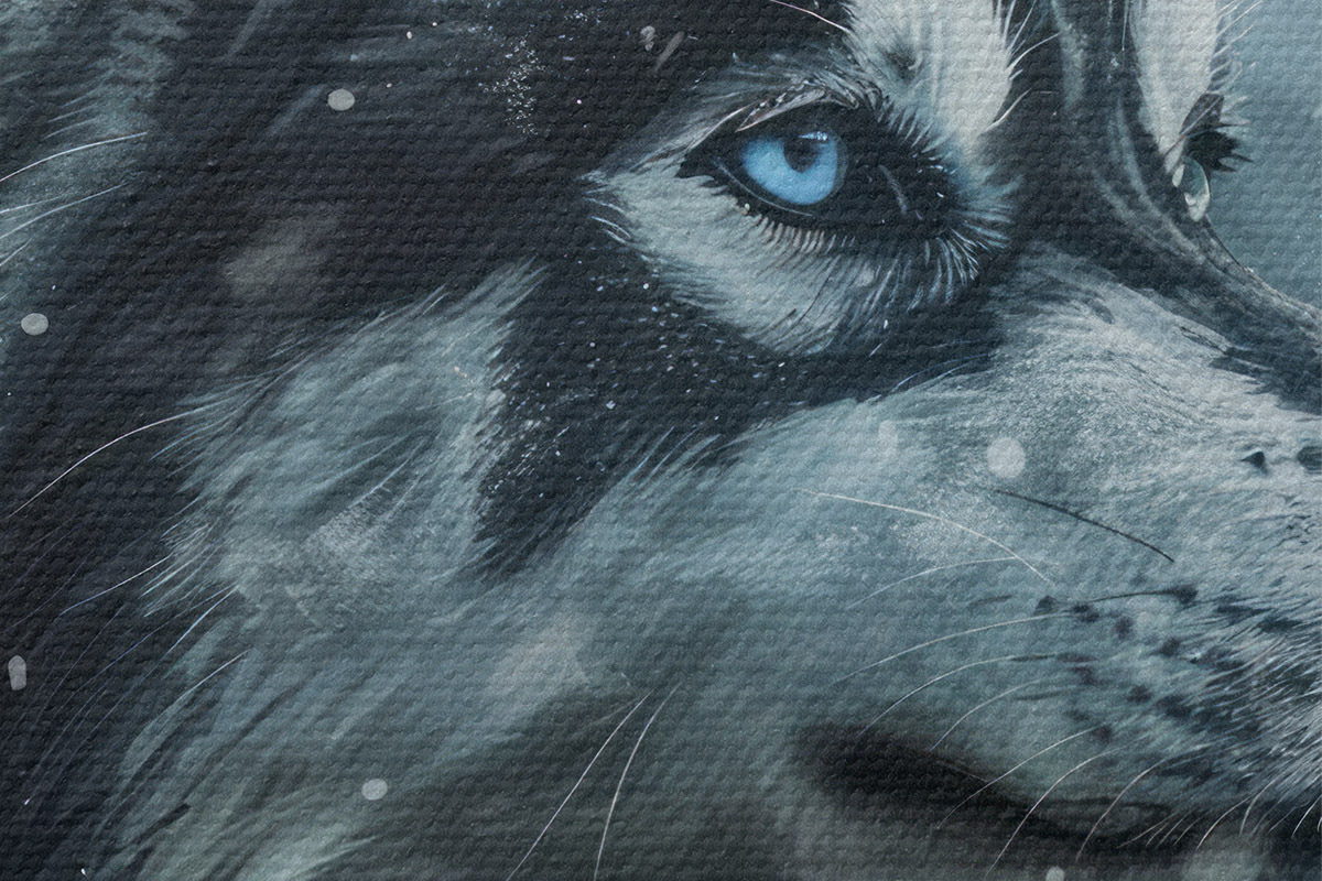 Obrázek Husky s modrýma očima zimní modré pozadí Nr r39462