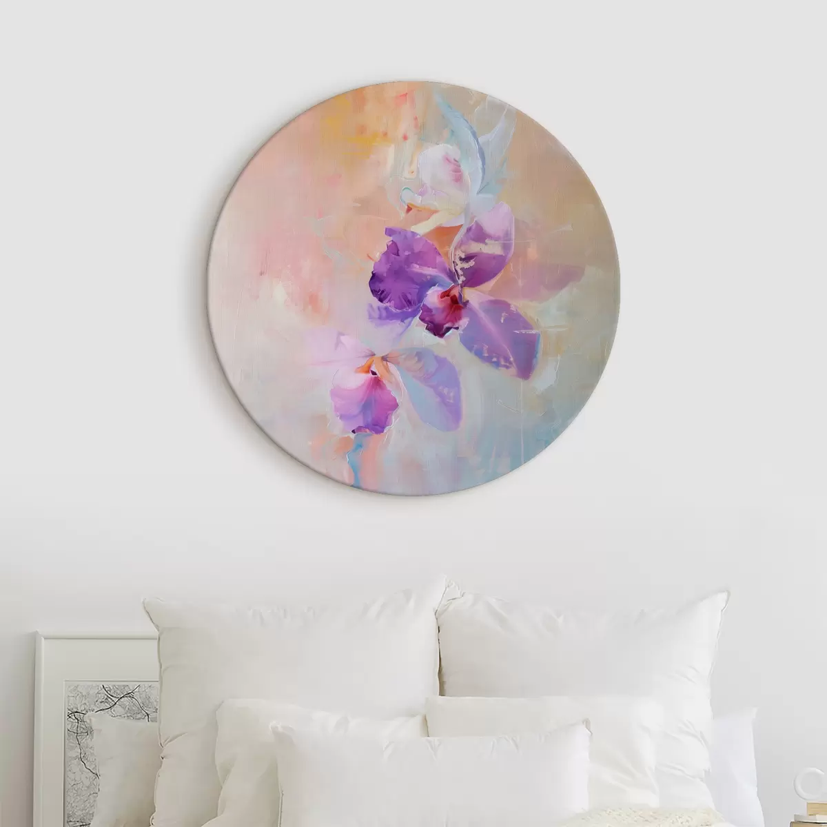 Obrázek Impresionistická malba orchidejí, světlé pastelové barvy, poloabstraktní botanický tisk, s neutrálním pozadím Nr r39463