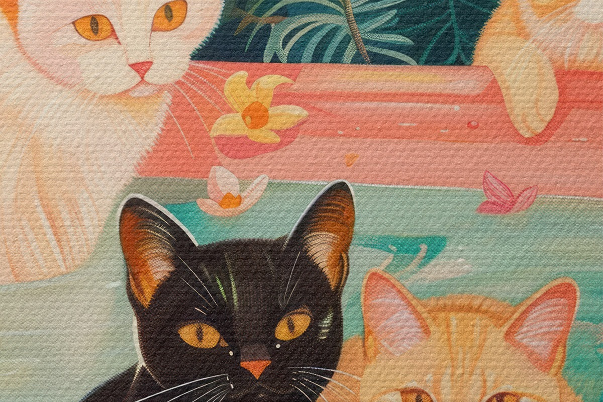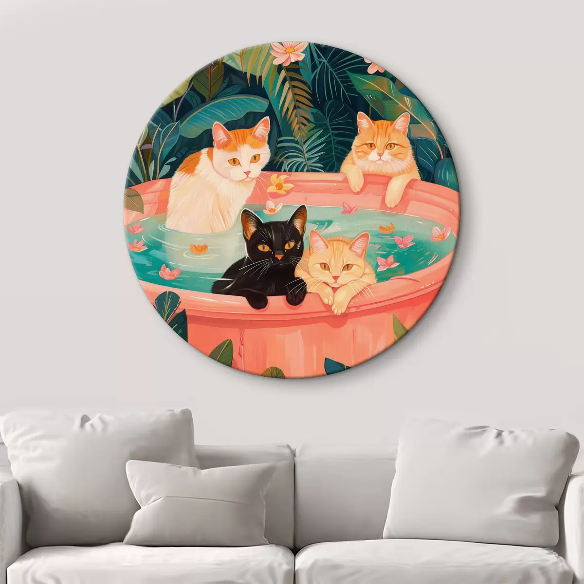 Obrázek Kočky v růžové vaně se zelenými listy, atmosféra džungle Nr r39465