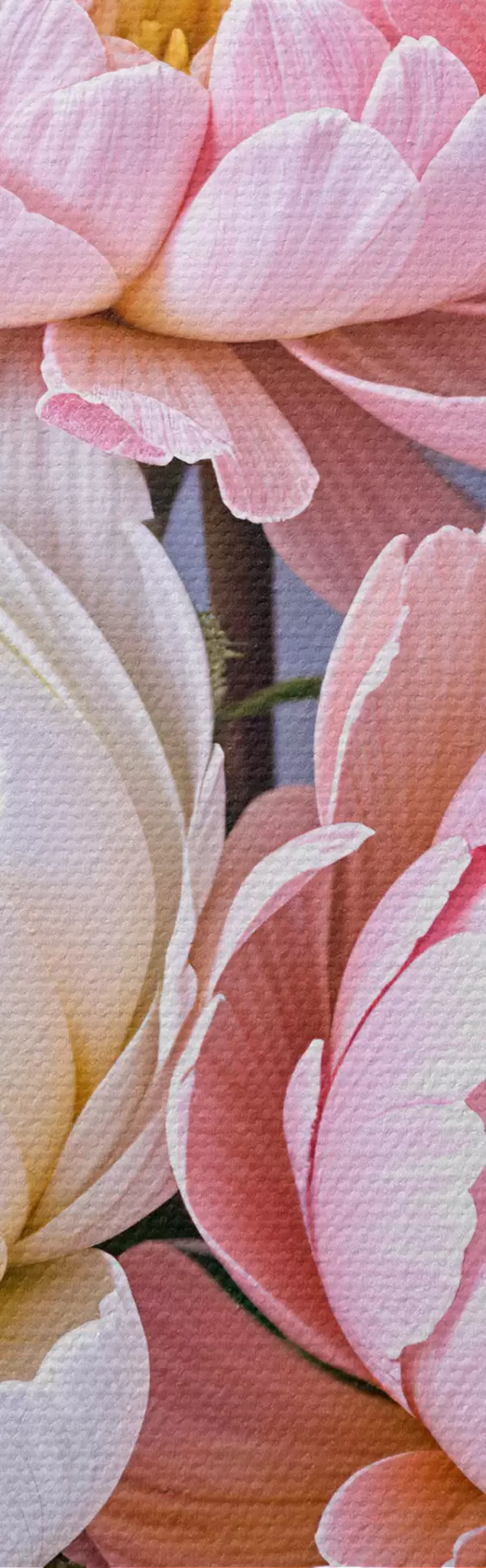 K objednání jsou k dispozici tři typy materiálu: Economic Canvas - hustý a odolný materiál pro digitální tisk, identický s malířským plátnem, voděodolný povrch, realistická reprodukce detailů, středně zrnitý materiál. Prémiové plátno - struktura připomíná malířské plátno (proplétané drobné nitě). Měkká, detailní reprodukce obrazu na matném povrchu. Eco-Premium - vysoce kvalitní tkanina ze 100% bavlny. Díky přírodním bavlněným vláknům je materiál trvanlivý a odolný proti opotřebení. Vynikající reprodukce barev a detailů.