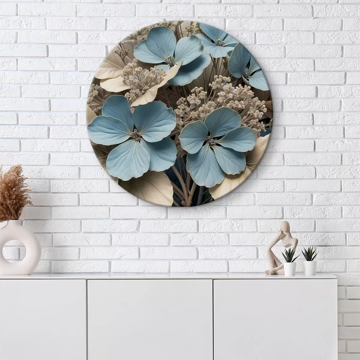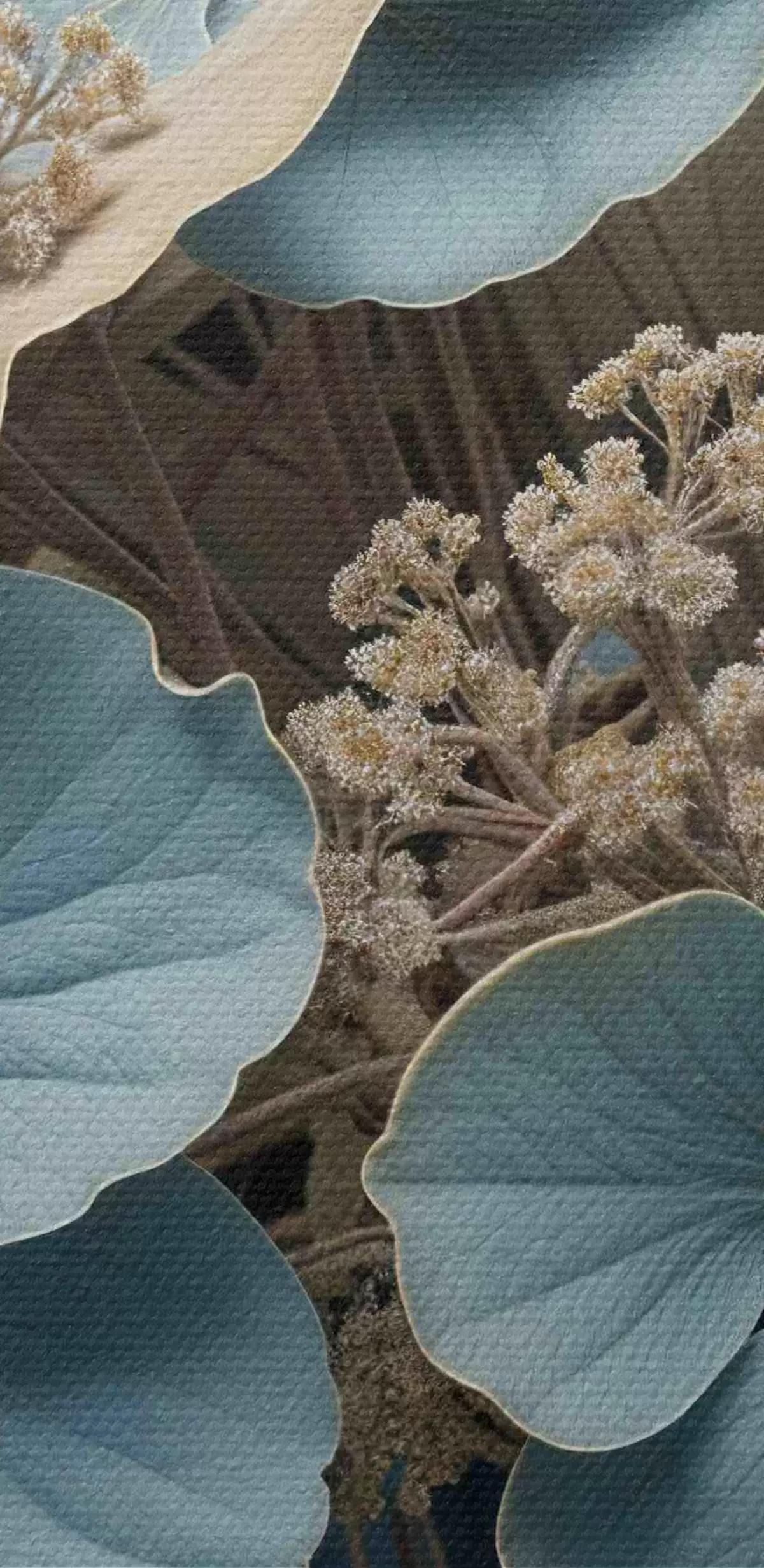 Obrázek Detailní záběr modrých a bílých květů s jemnými, rozmazanými okvětními lístky na hnědém pozadí Nr r39517
