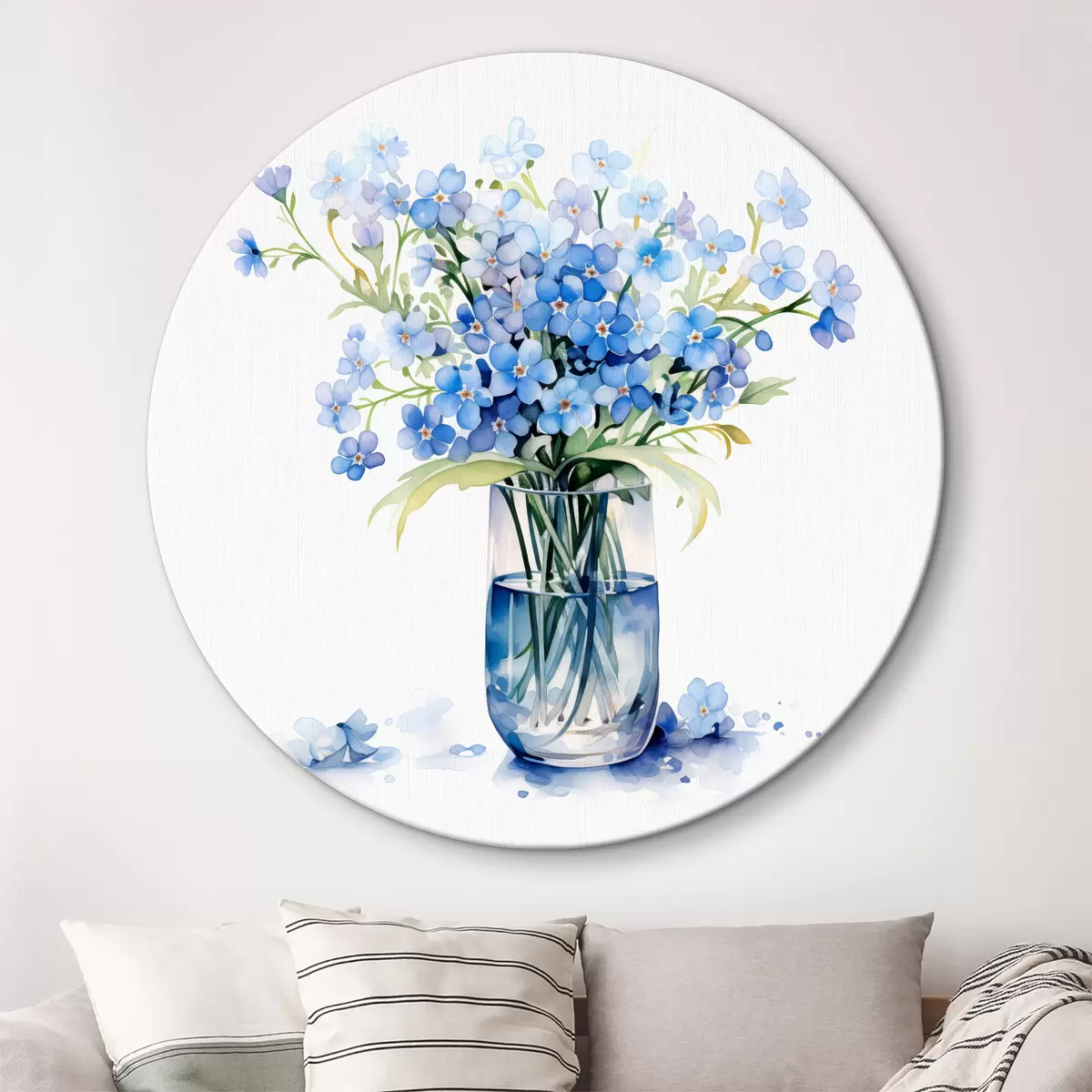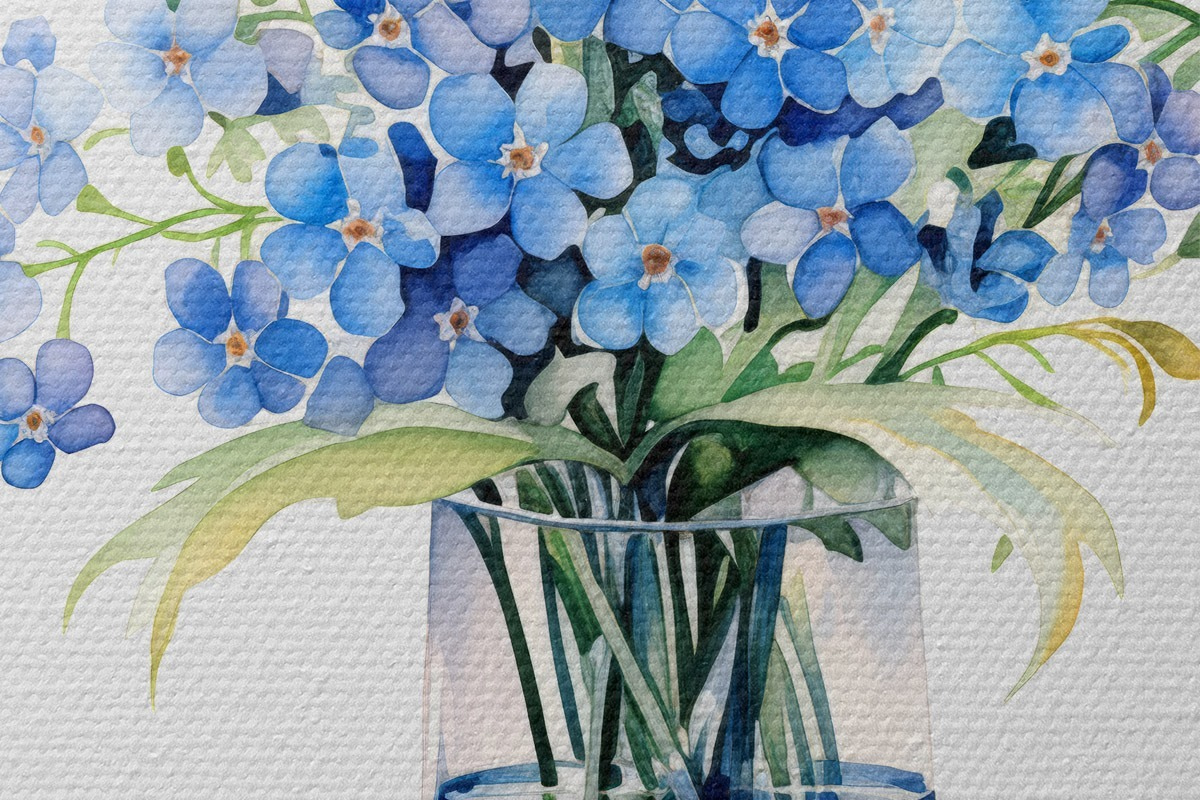 Obrázek Kytice modrých lučních květin v průhledné váze akvarelem Nr r39564