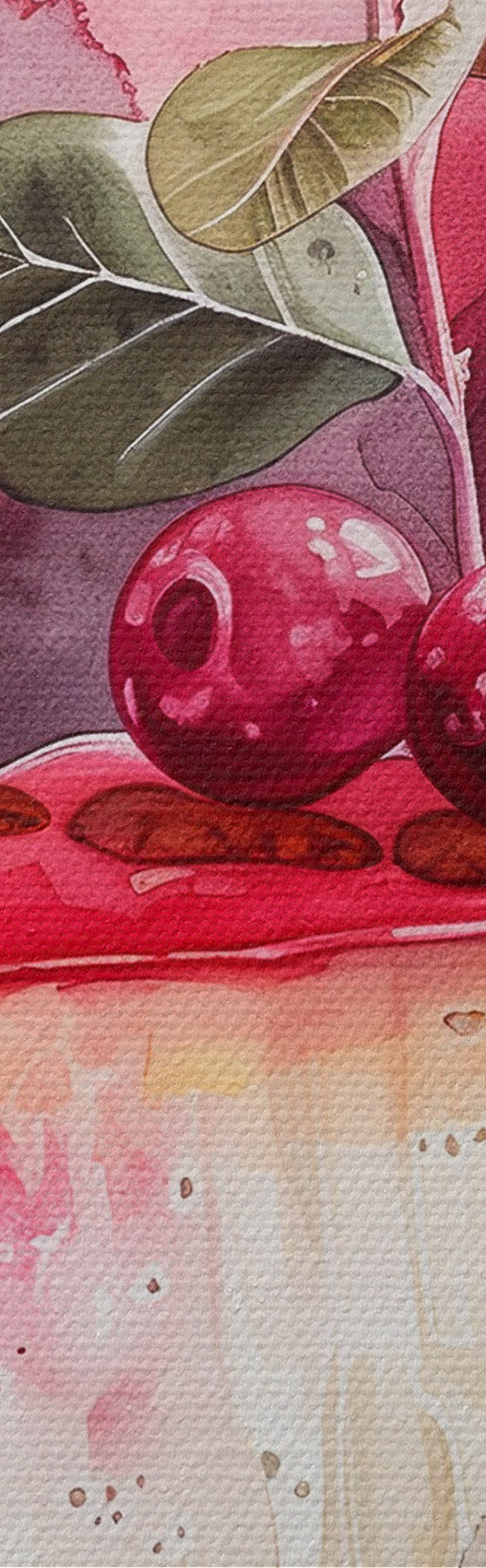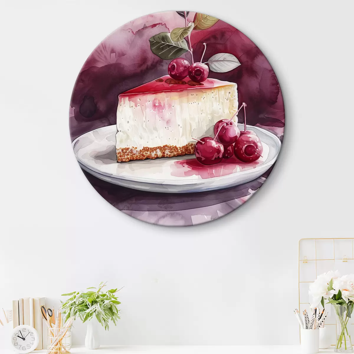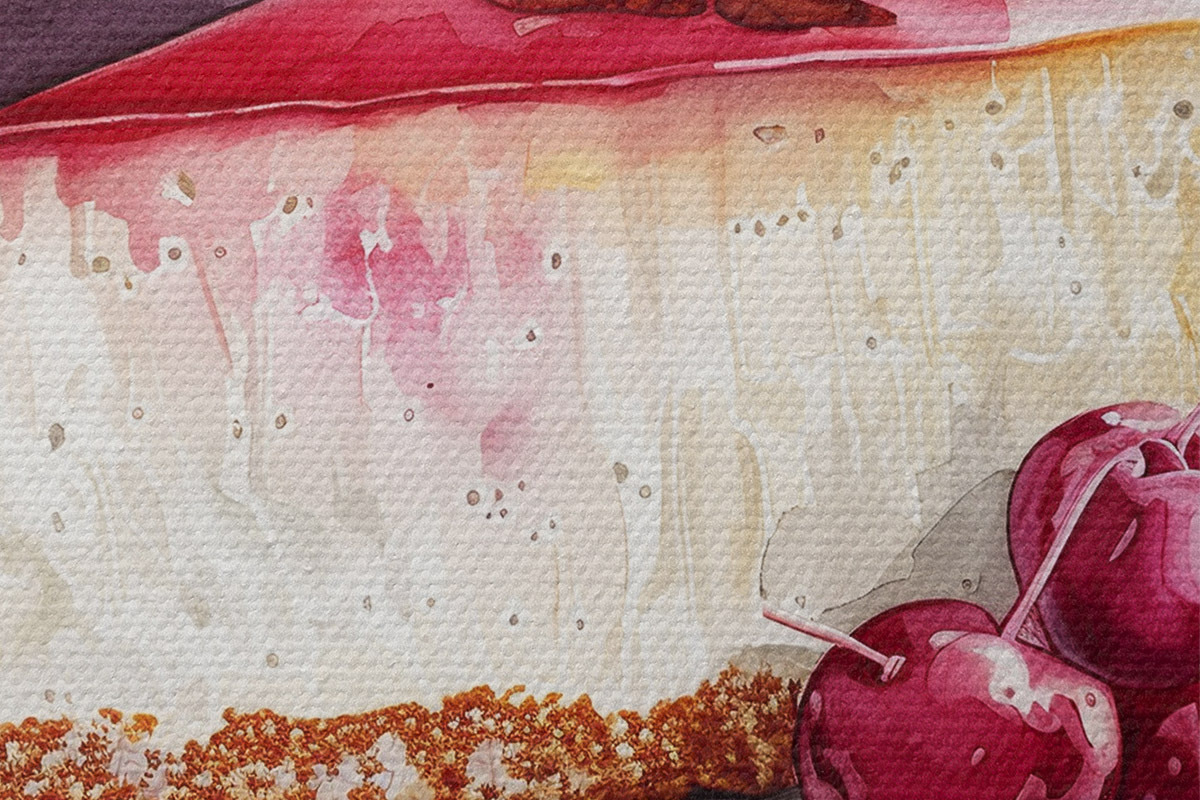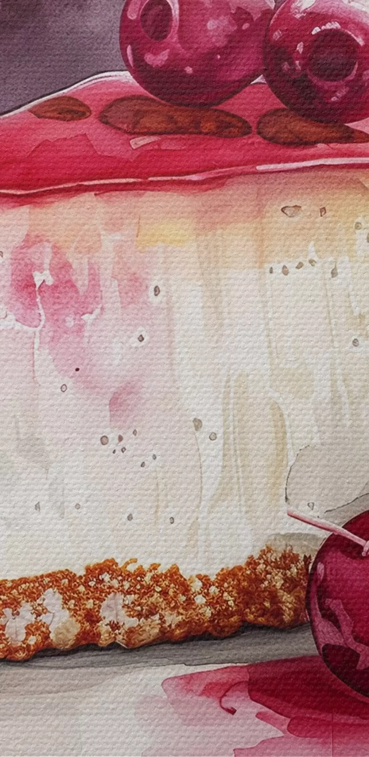Obrázek Akvarelový tvarohový koláč s třešněmi, elegantní food art, červené a fialové barvy Nr r39700