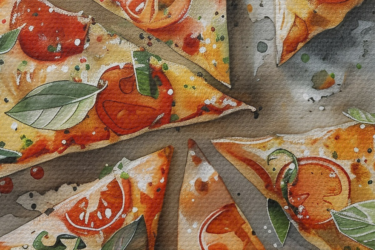 Obrázek Vynikající italská pizza, akvarel food art, margarita, rajčata Nr r39703
