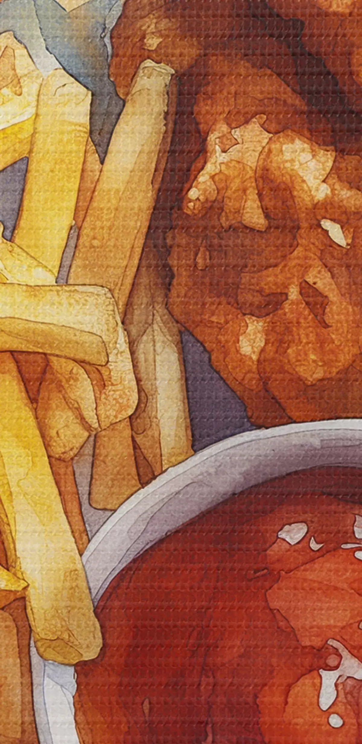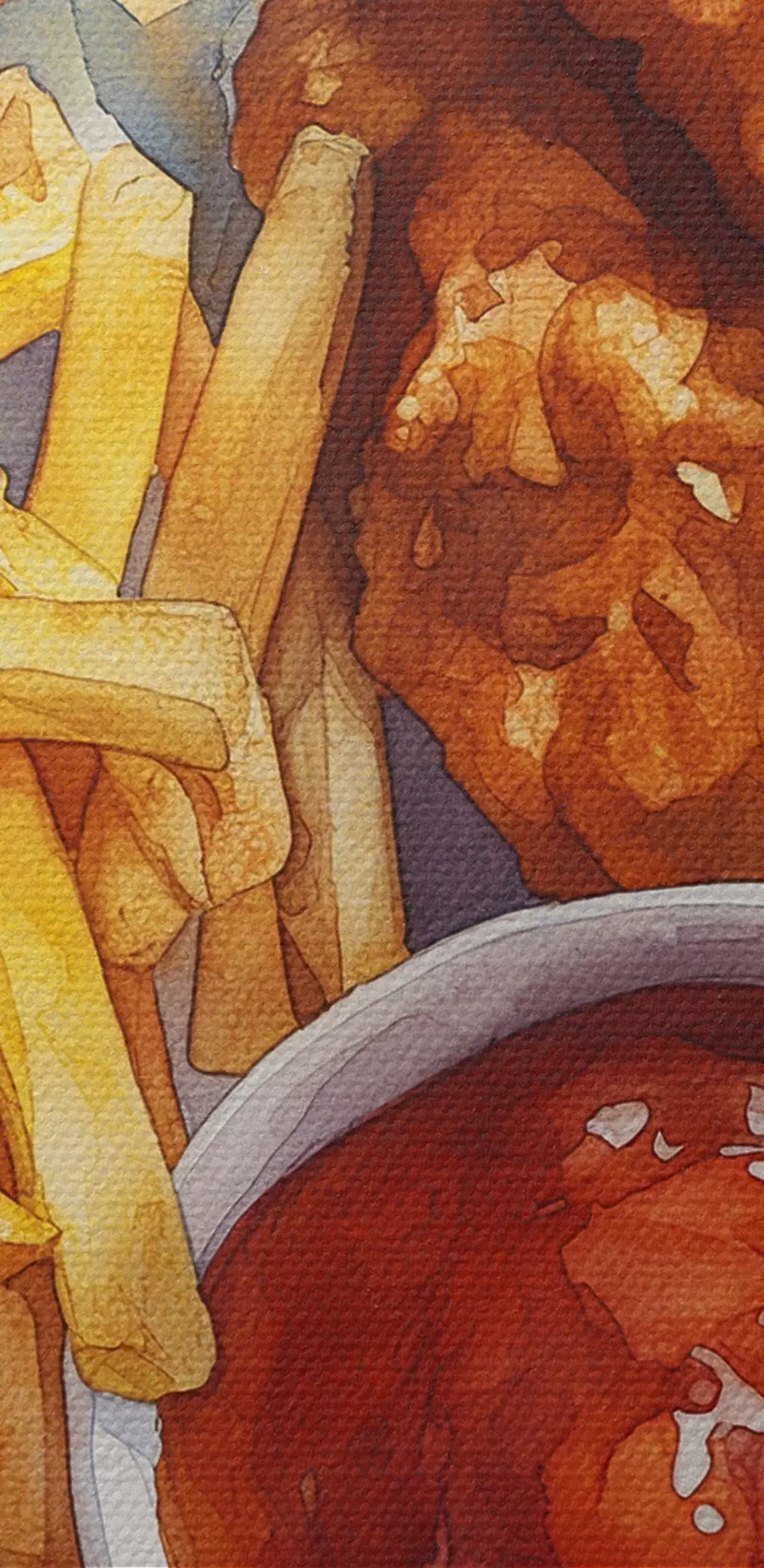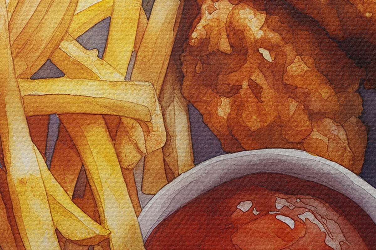 Obrázek Akvarelové pouliční jídlo, hranolky s pečeným kuřecím masem, vynikající Nr r39709
