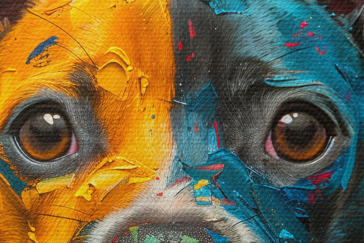 Obrázek Portrét Pitbulla se žlutými a modrými tahy štětcem Nr r39722