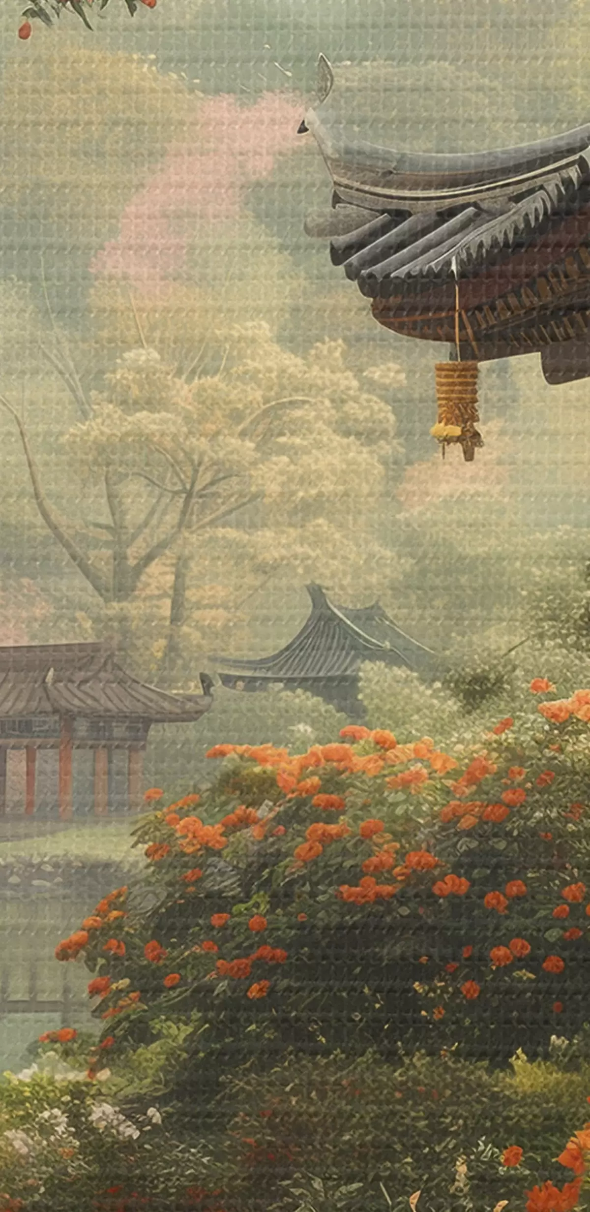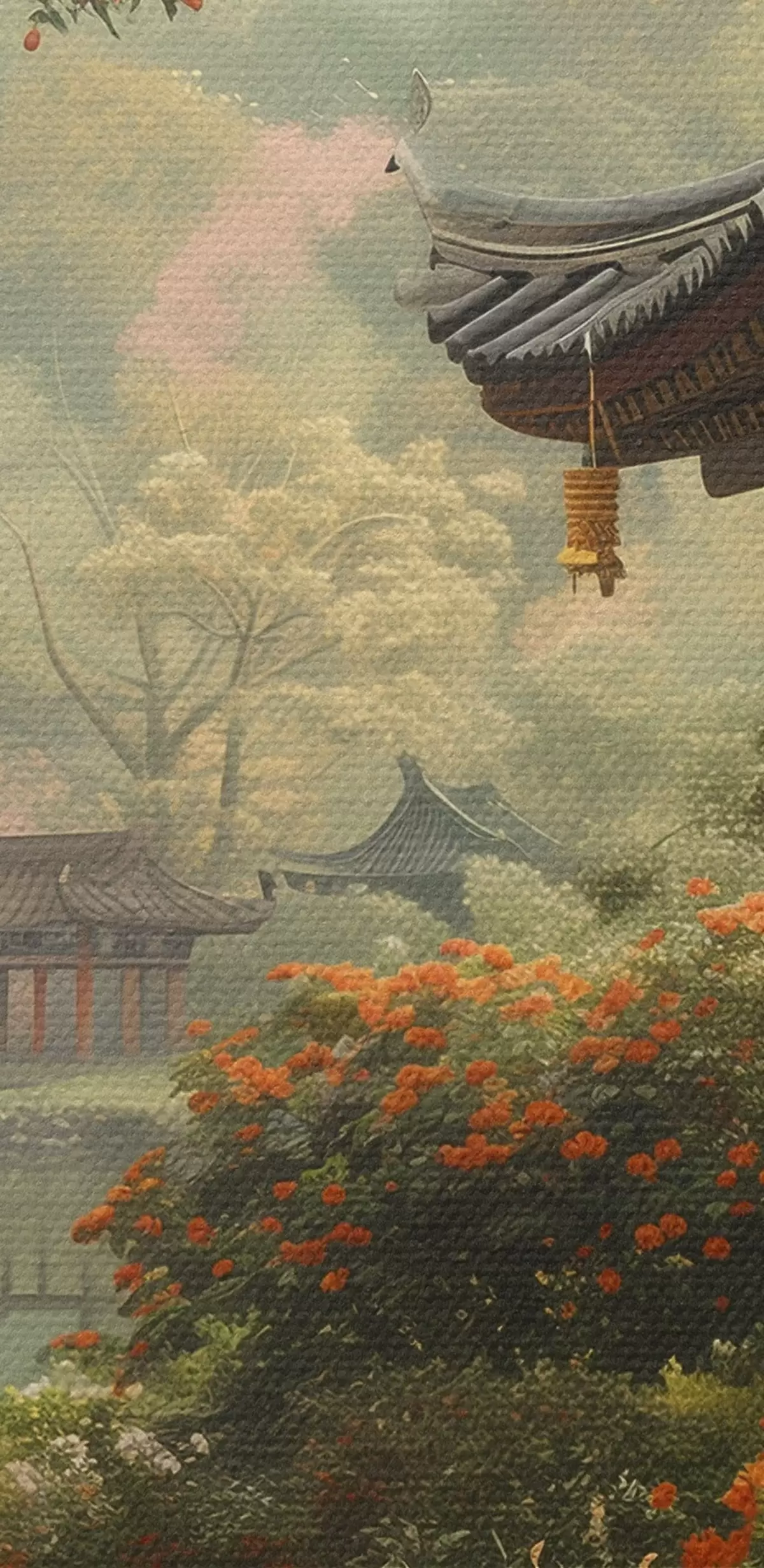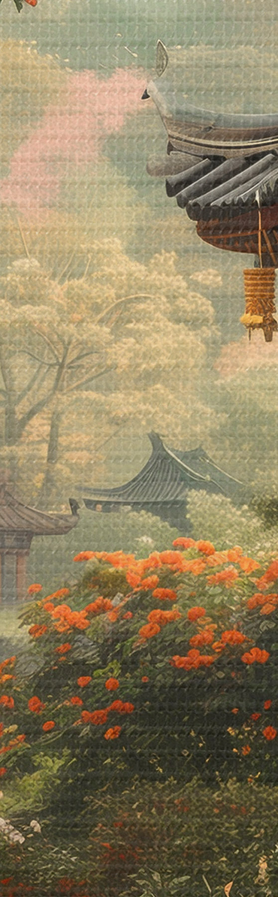 Obrázek Japonský park s kvetoucími stromy a květinami, les, zahradní domek, jezero Nr r39772