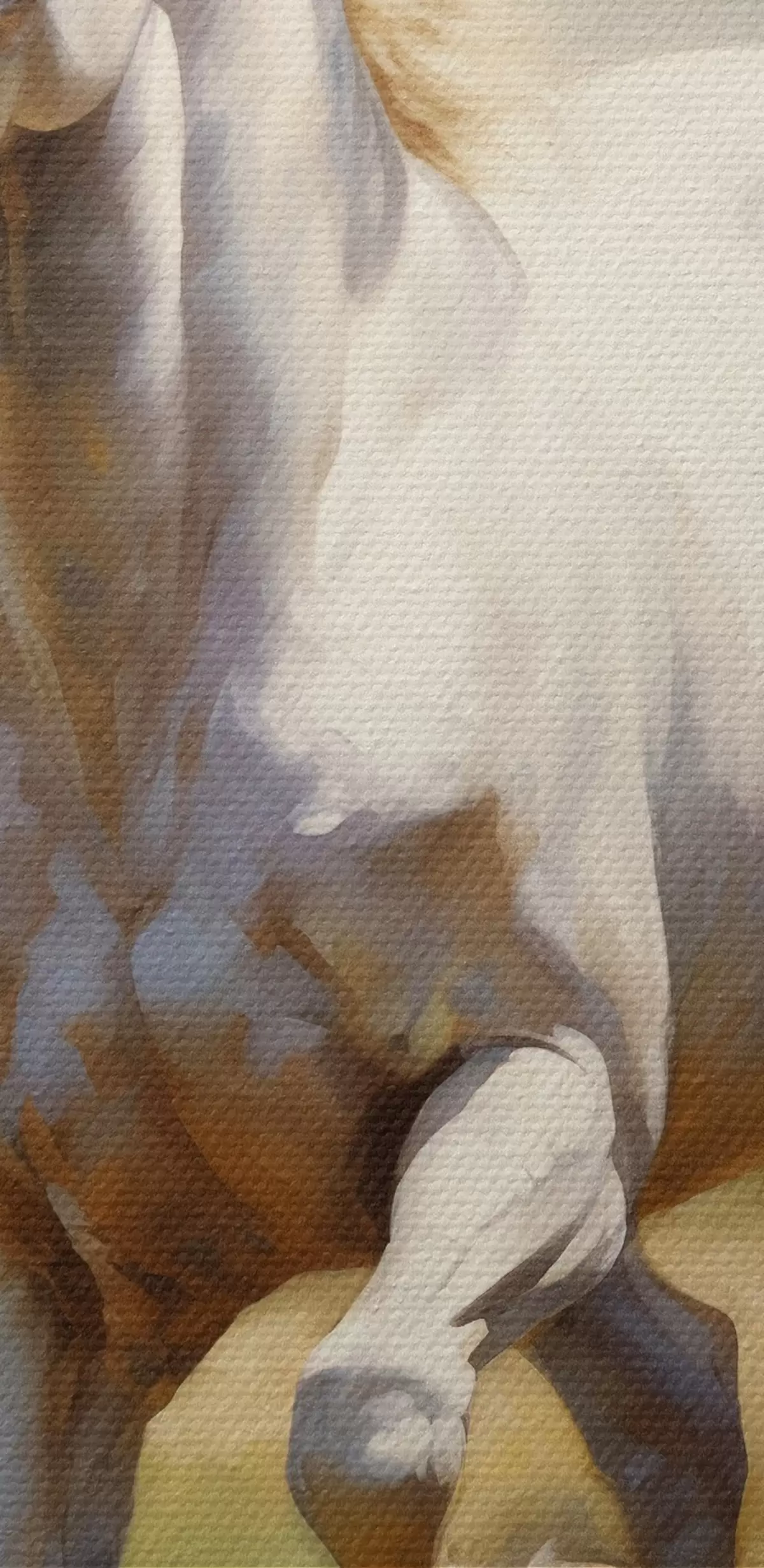 Obrázek Bílý kůň cválající přes louku olejomalba Nr r39818