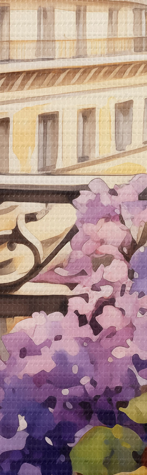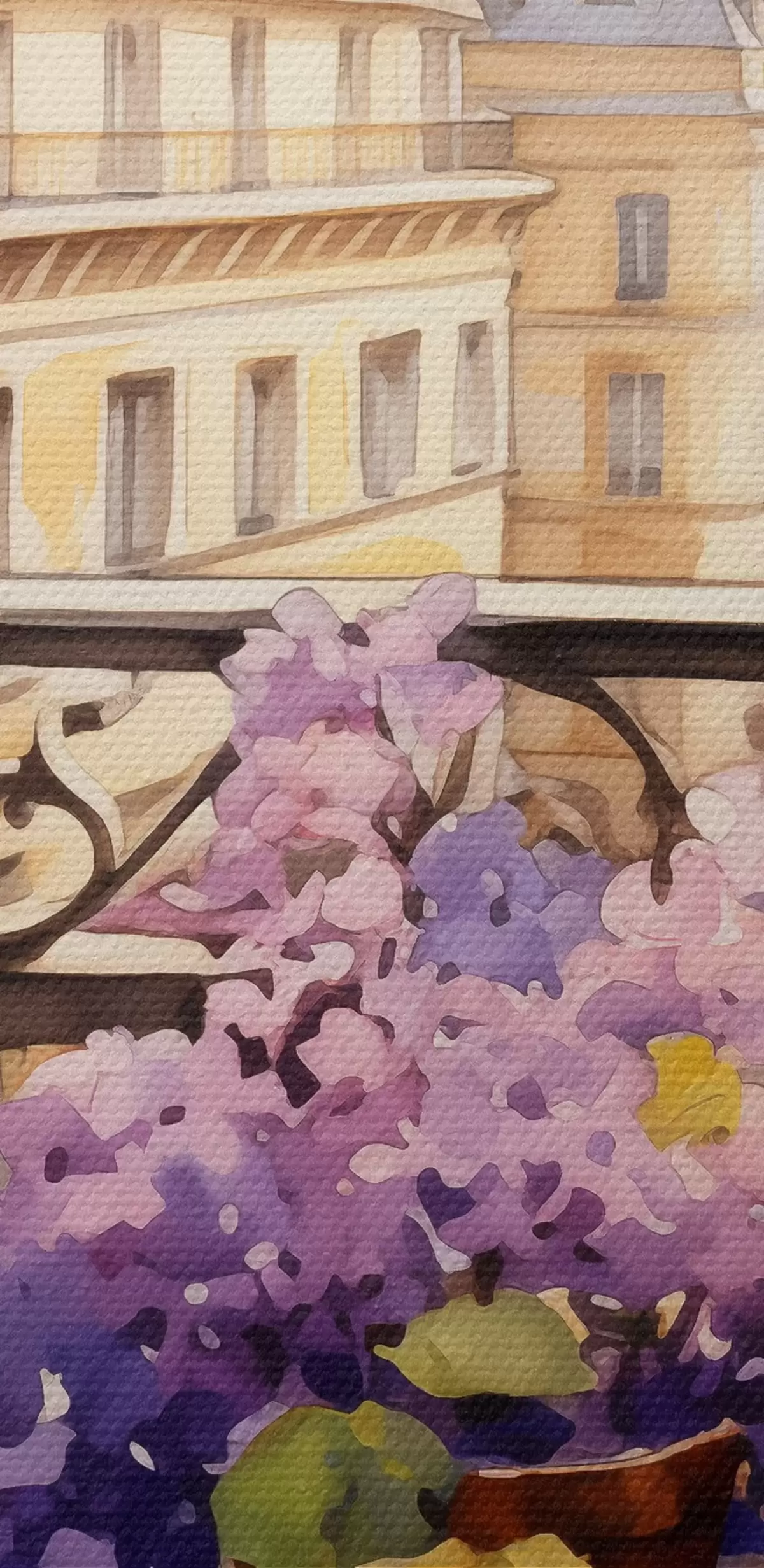 Obrázek Fialky v květináči na balkóně v akvarelu Paříž Nr r39931