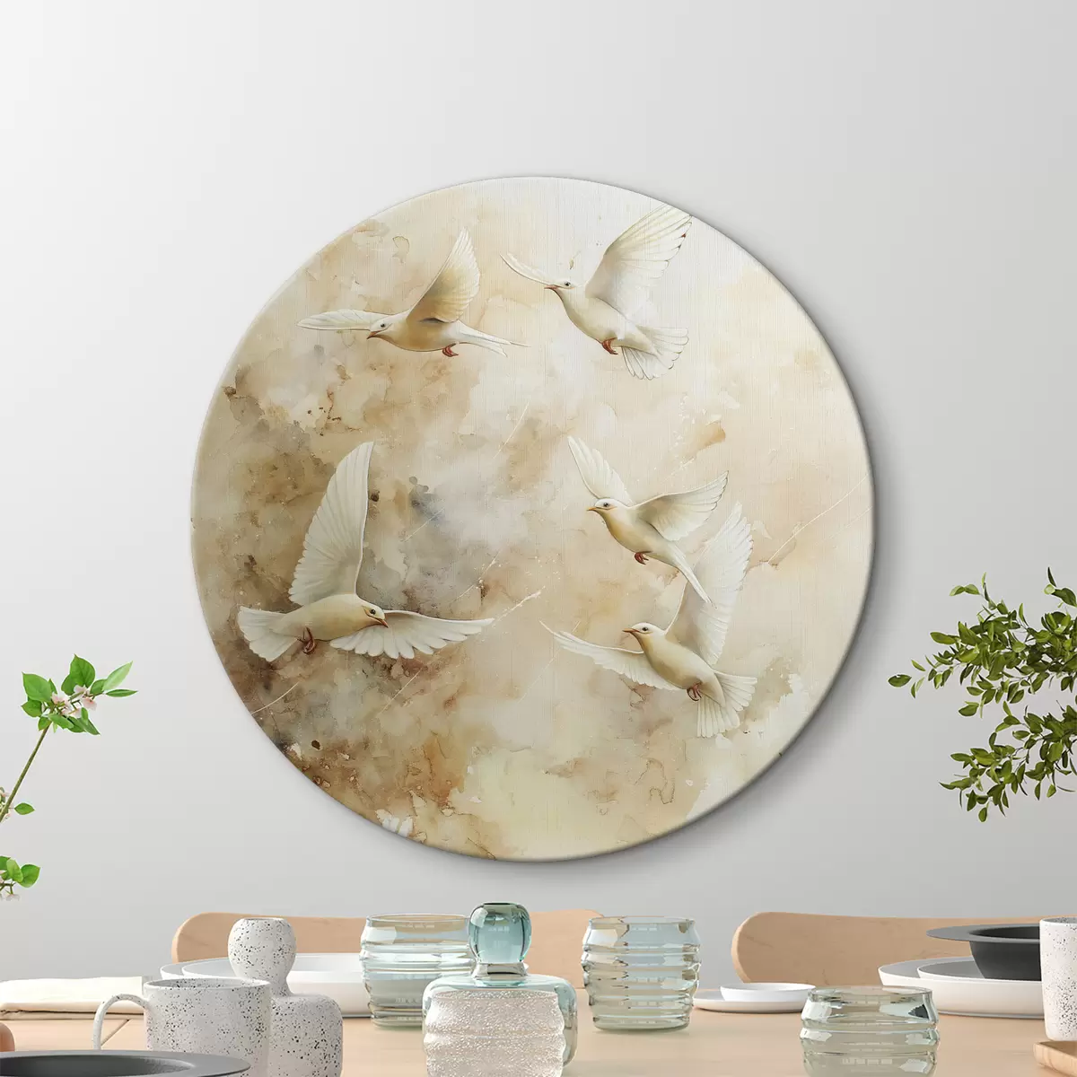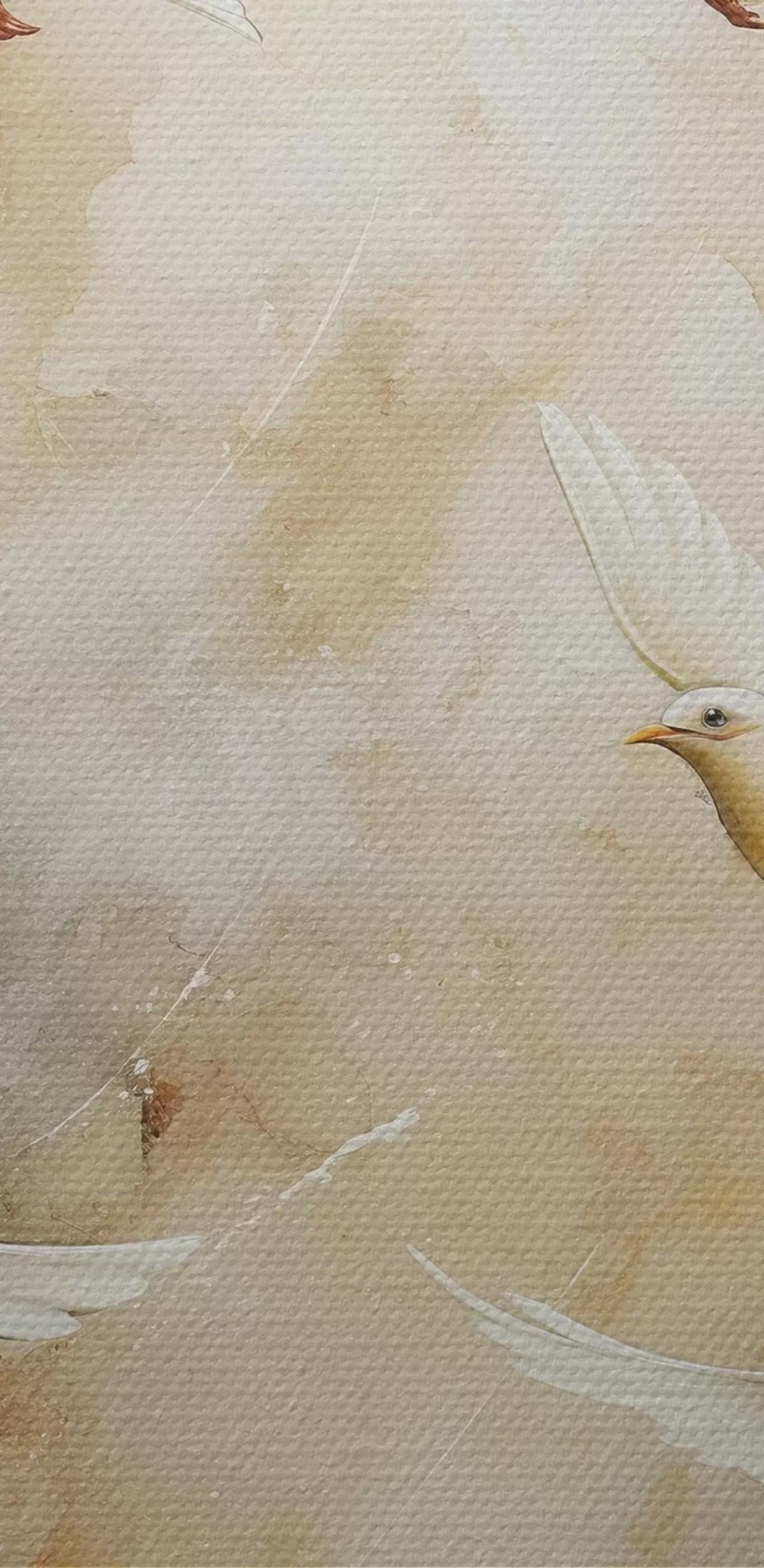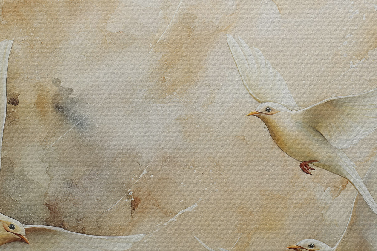 Obrázek Akvarel létající holubi, jemné béžové a bílé barvy Nr r39977