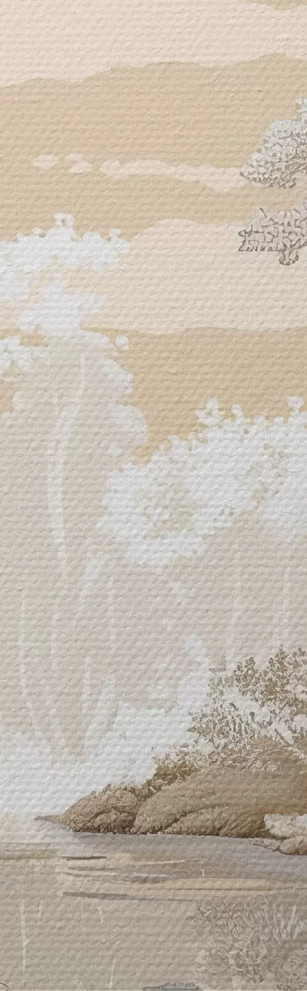 Obrázek Krásná lesní krajina, jemné pastelové barvy, béžová a bílá Nr r39978