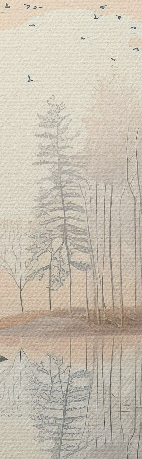 Obrázek Krásná přírodní krajina, rybník a stromy, divoká zvěř, jemné pastelové barvy Nr r39980