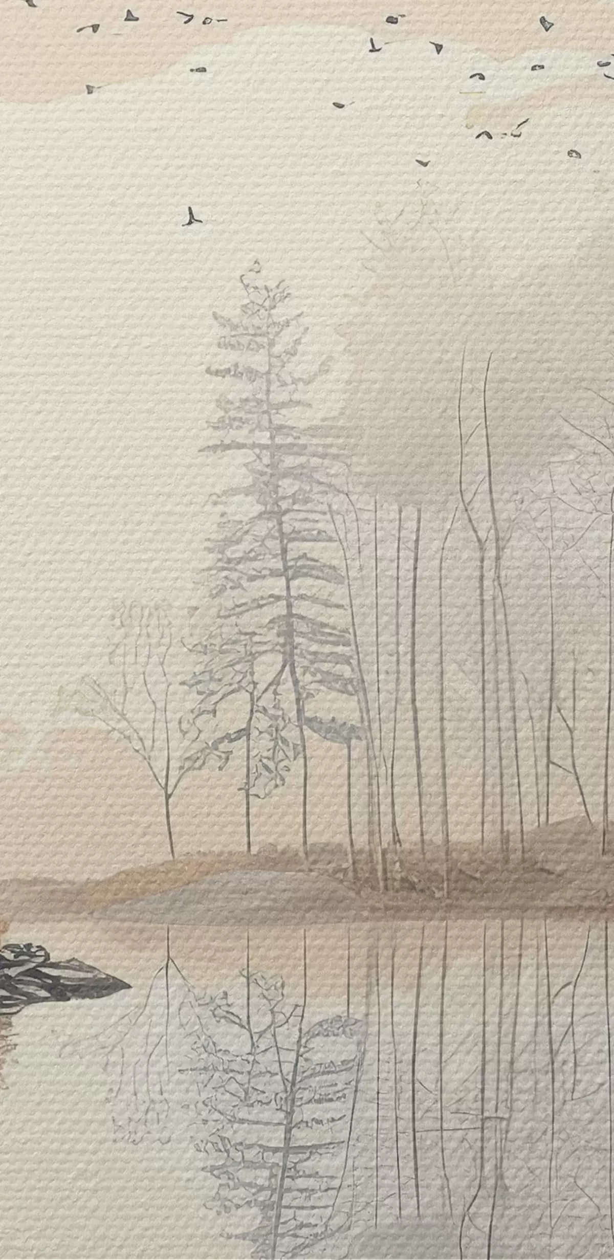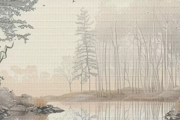 Obrázek Krásná přírodní krajina, rybník a stromy, divoká zvěř, jemné pastelové barvy Nr r39980